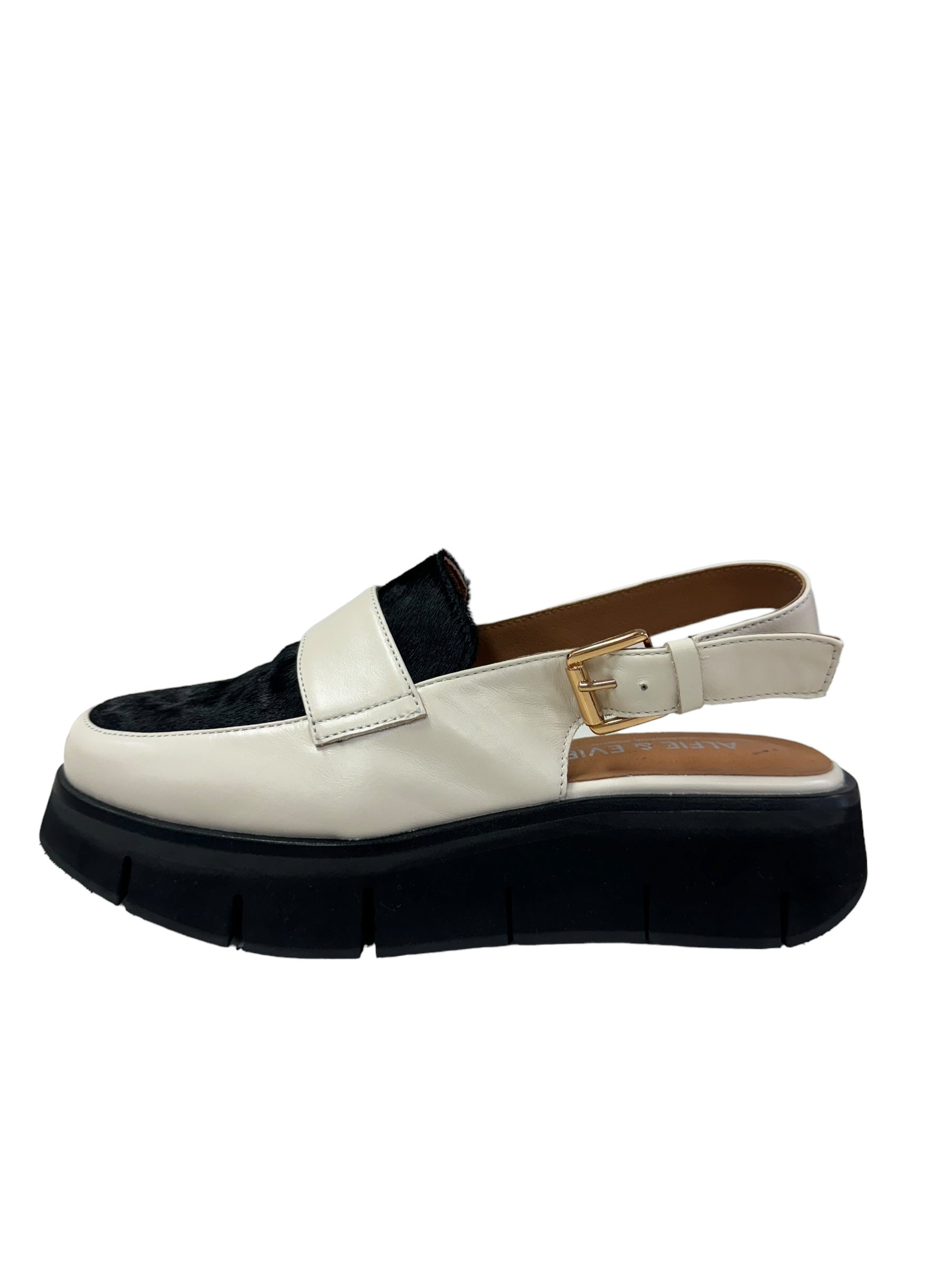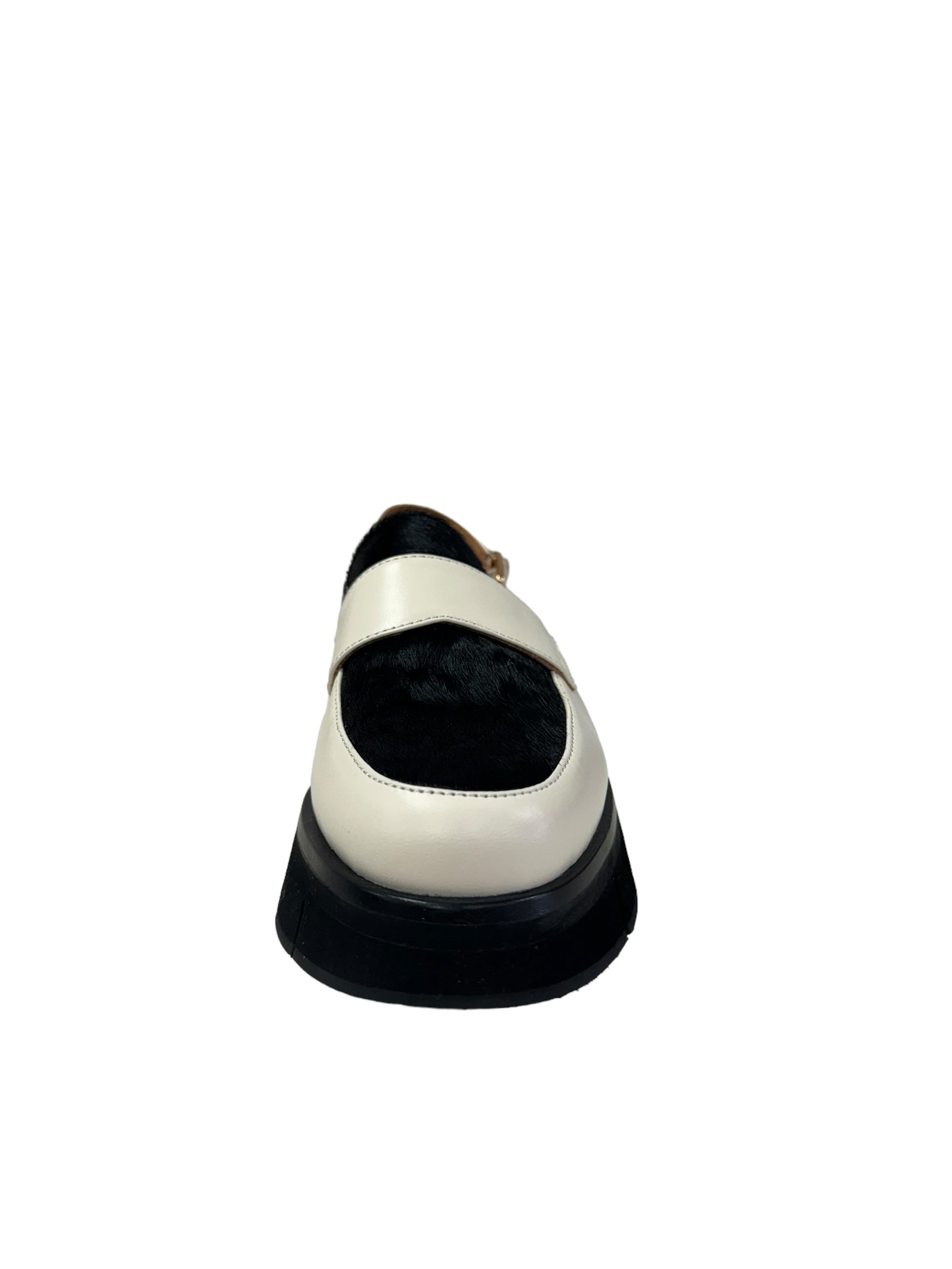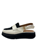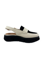 Experience ultimate comfort and style with Boost - Cream/ Black. Crafted with premium leather and black hide, these loafers feature a platform for added cushioning and a sling back for a secure fit. Elevate any outfit with these versatile and chic shoes!