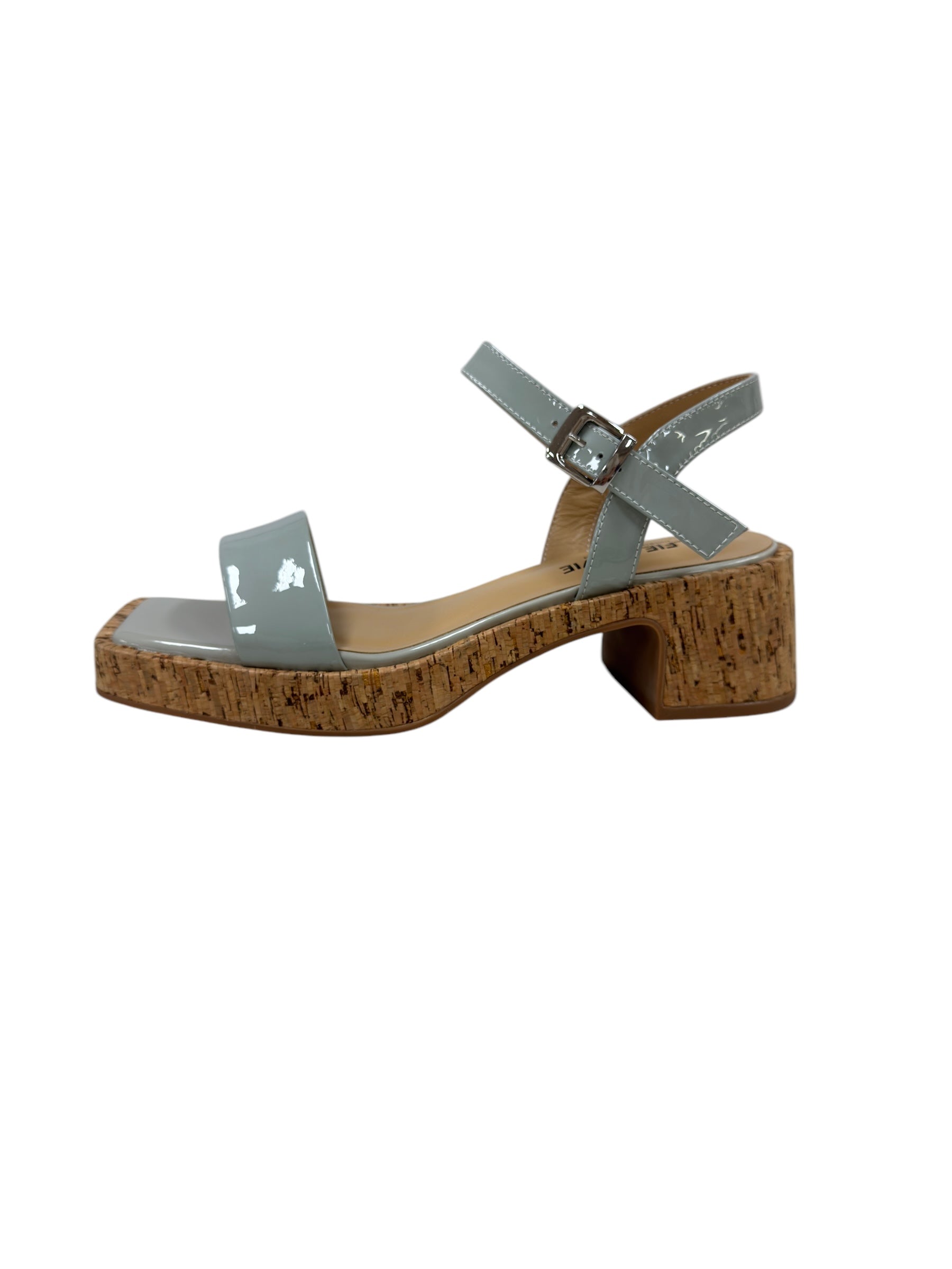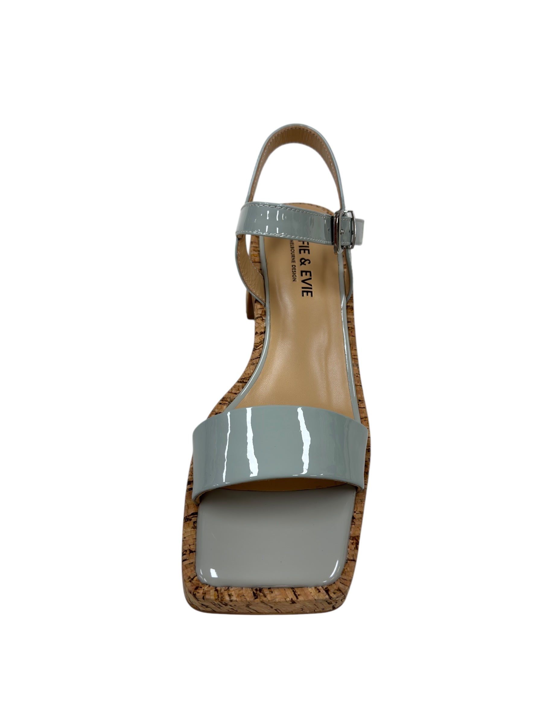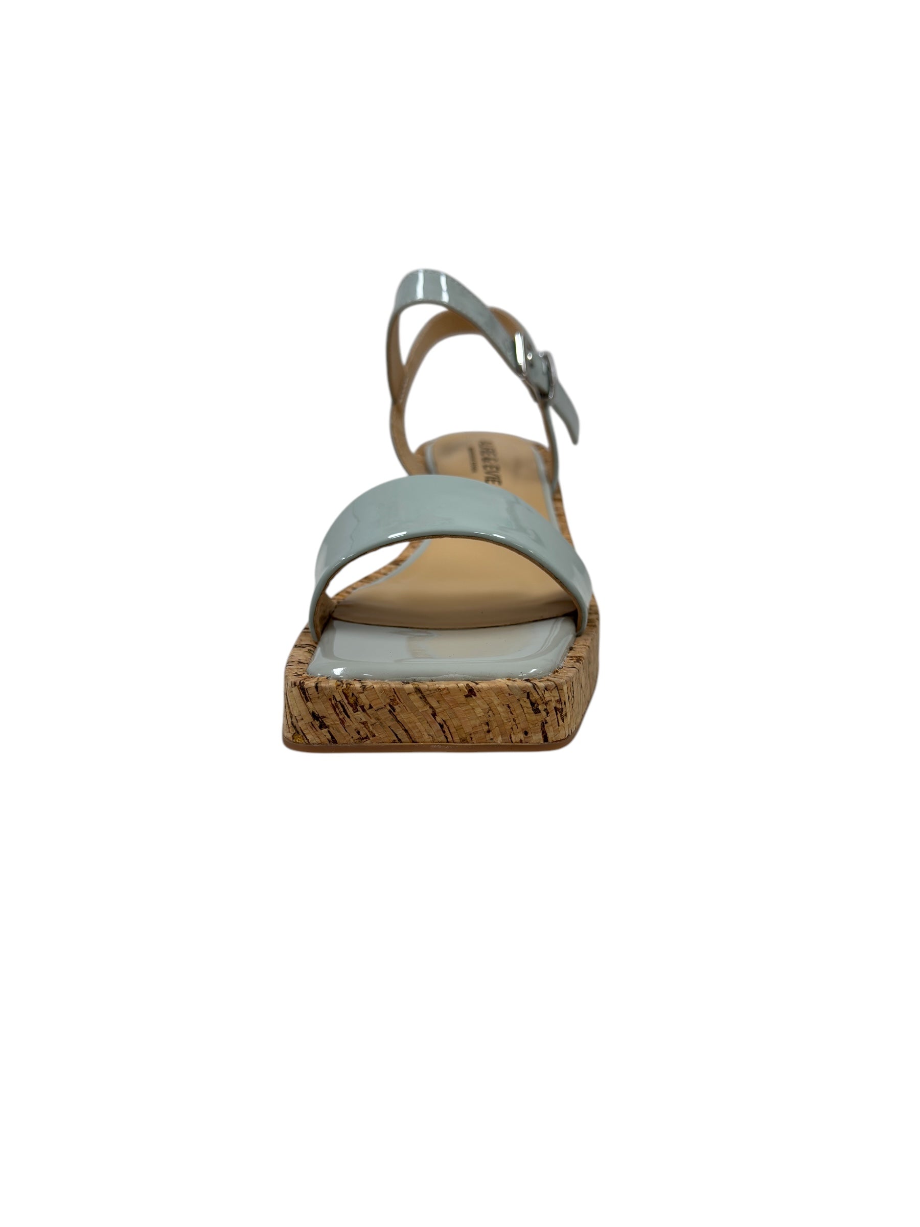 Add some playful style to your step with Nathan - Mist Patent shoes! Featuring a light green patent leather, a trendy block heel, and a secure ankle strap, these shoes will elevate any outfit with a touch of sass. The cork pattern bottom adds a quirky touch to these already unique shoes.
