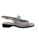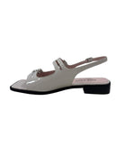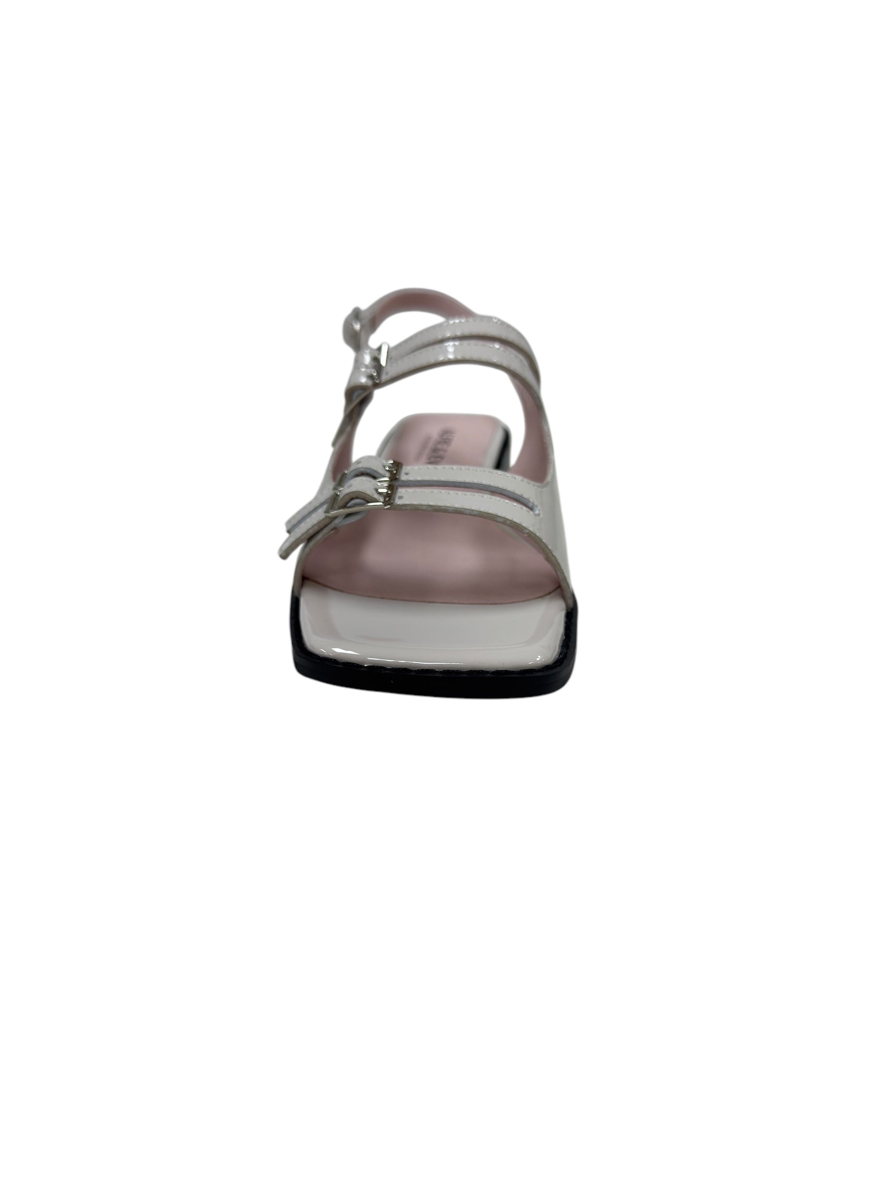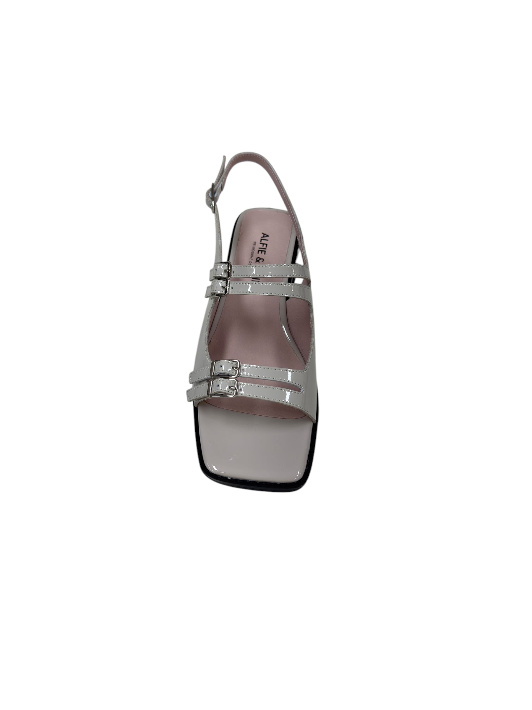Add some edge to your step in Nicola - Grey Patent. Made with sleek grey patent leather, these sandals feature buckles across the foot, an ankle strap, and a slight wedge for extra height. Go from day to night with ease in this playful and stylish design. (Warning: may cause shoe envy!)