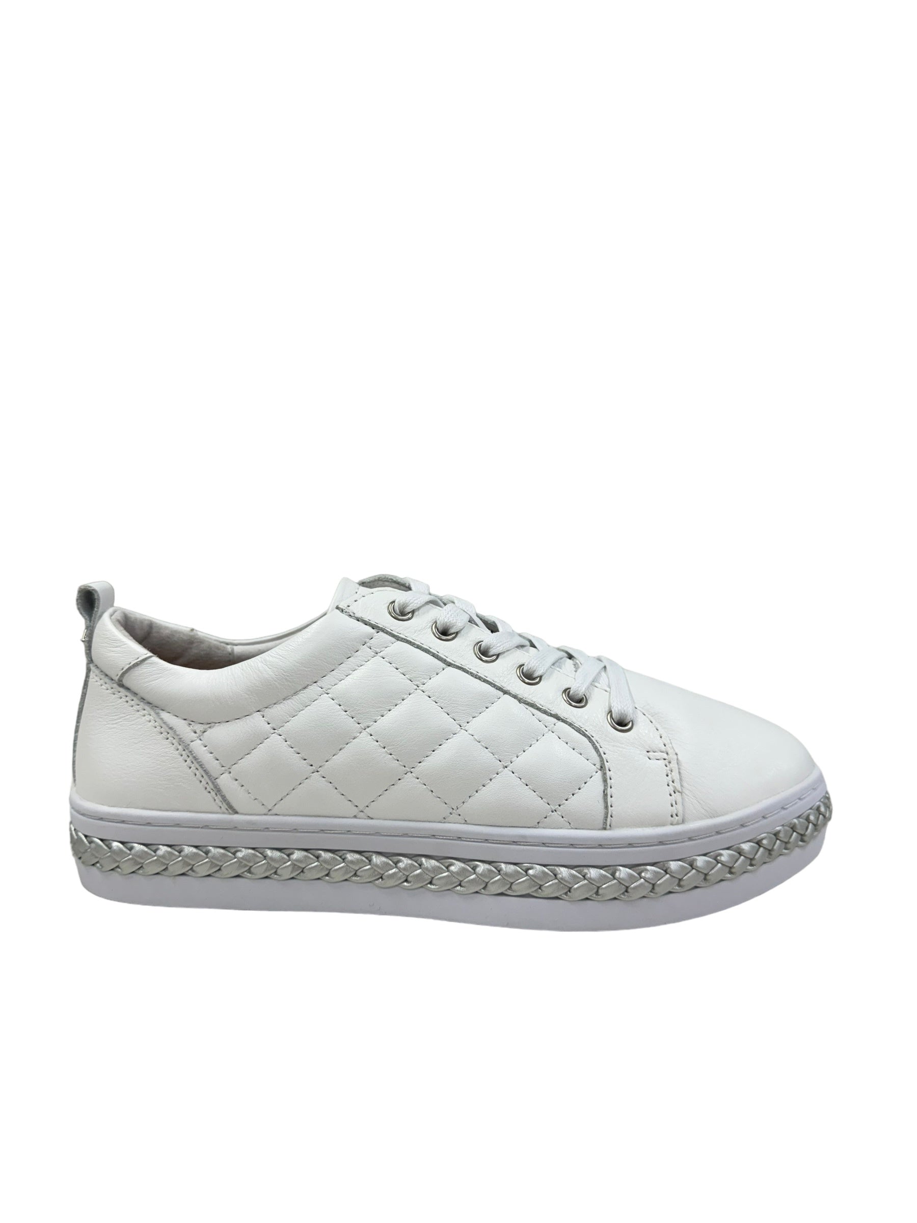 Step into style and comfort with Petal - White! Made with soft leather, these sneakers feature a sleek silver trim and striking quilted leather detail. The platform sole provides a trendy boost, while remaining orthotic friendly. Upgrade your shoe game with this must-have pair!