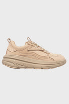 A fresh new sneaker trainer, combining sport style yet an incredibly commercial look in one. This outsole is incredibly lightweight with a pair weighing in at 560 grams. Featuring a laced sneaker upper, nude nubuck leather and removable memory foam leather innersole.