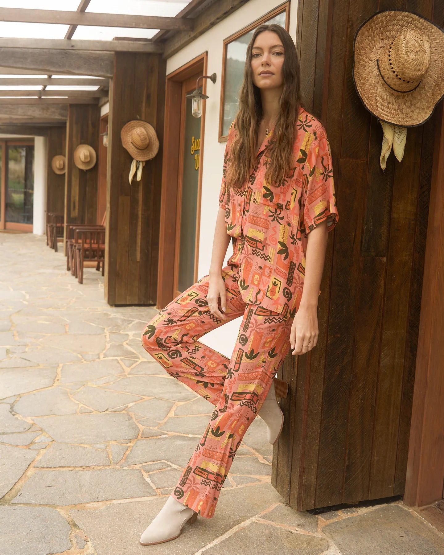 Introducing our All About Eve exclusive Arizona inspired yardage print. Featuring soft viscose crepe fabric, the Arizona Flare Pant is a must have paired with our Arizona Shirt for the perfect set.
