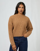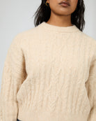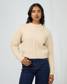 Get wrapped up in the cozy comfort and trendy style of our Margaux Cable Knit. This knitwear features a classic crew neck design that provides both warmth and fashion-forward flair. With a cropped length, it's the perfect addition to your wardrobe for those chilly days ahead. Plus, it's perfect for layering!