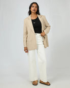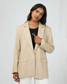 Elevate your wardrobe with this effortlessly stylish Toledo Blazer that’s sure to be a wardrobe staple! Crafted from a breathable and lightweight linen blend, this blazer combines comfort with a polished look. Perfect for transitioning between seasons, its relaxed fit provides a laid-back yet chic silhouette, making it versatile for both casual and semi-formal occasions. Pair with some jeans for a more casual look or over the top of a dress for a more evening look.