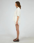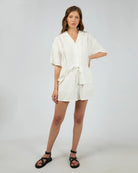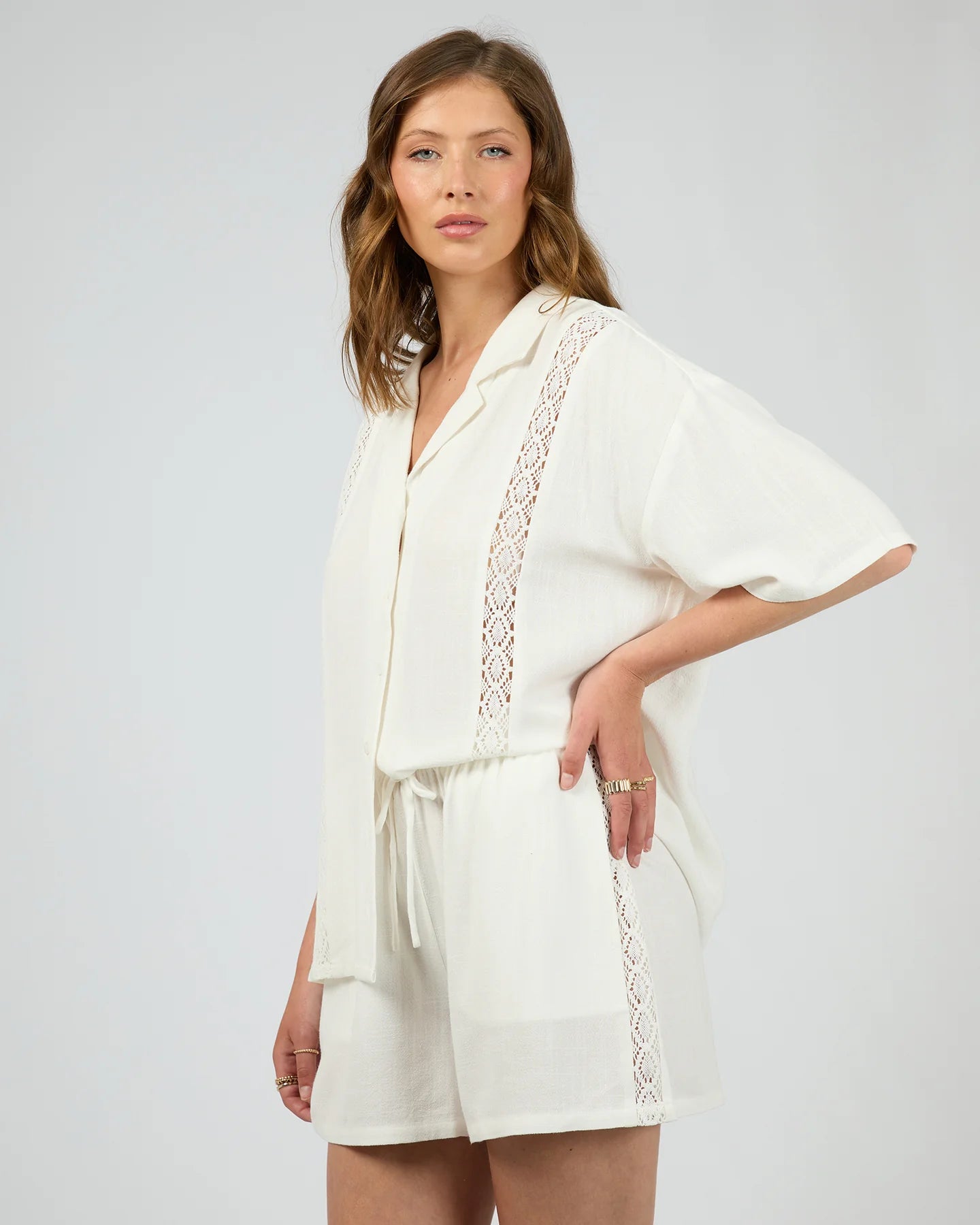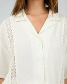 Add a touch of elegant charm to your casual wardrobe with the Toledo Shirt, designed to offer both comfort and style. Featuring a gorgeous inset lace along the shoulders and sleeves, a button-up front that allows for easy wear and versatile styling, while the loose fit ensures a relaxed, flattering silhouette. Whether you’re dressing it up with a skirt or pairing it with your favourite jeans, this shirt combines laid-back comfort with a subtle, refined detail.