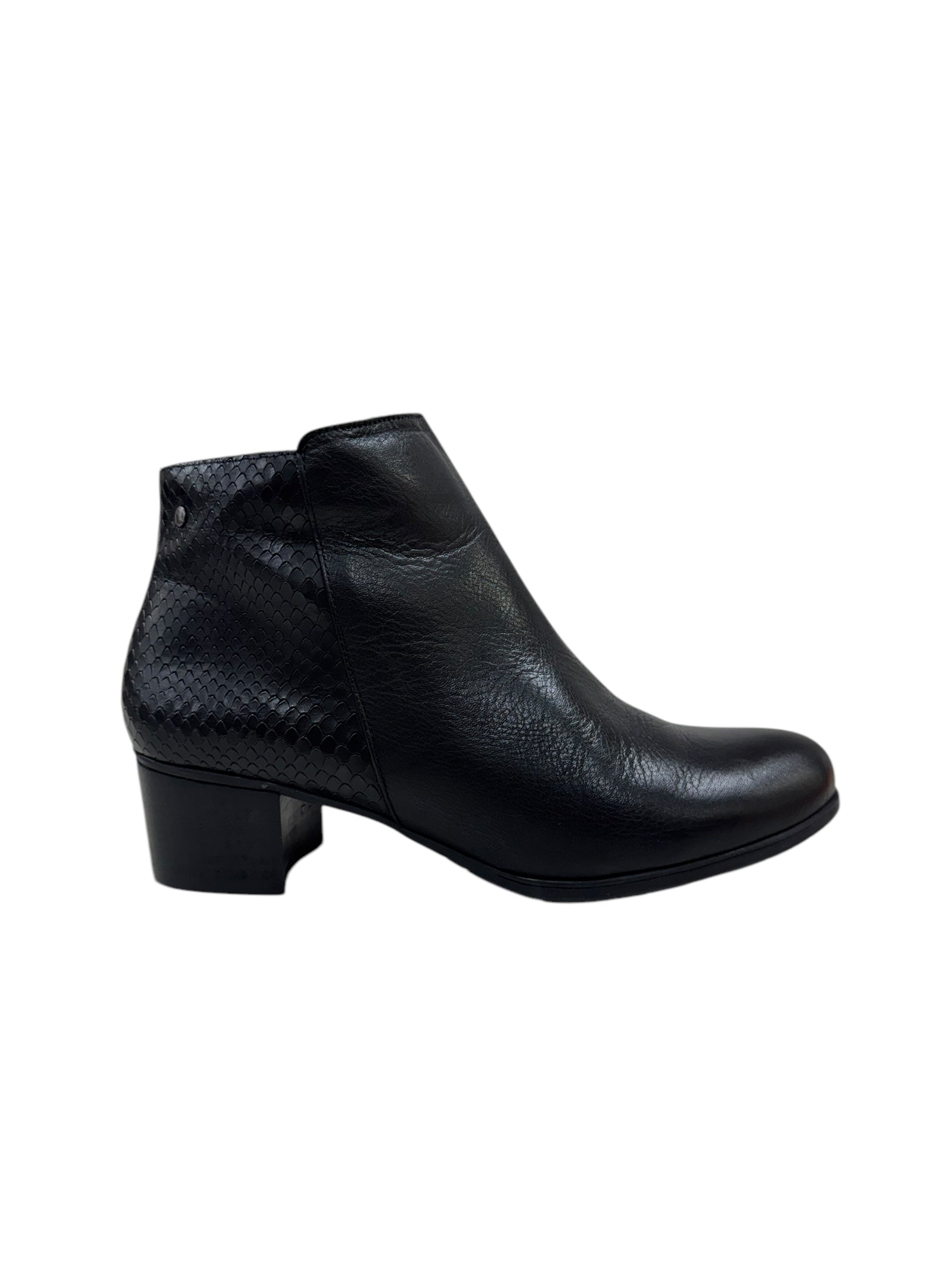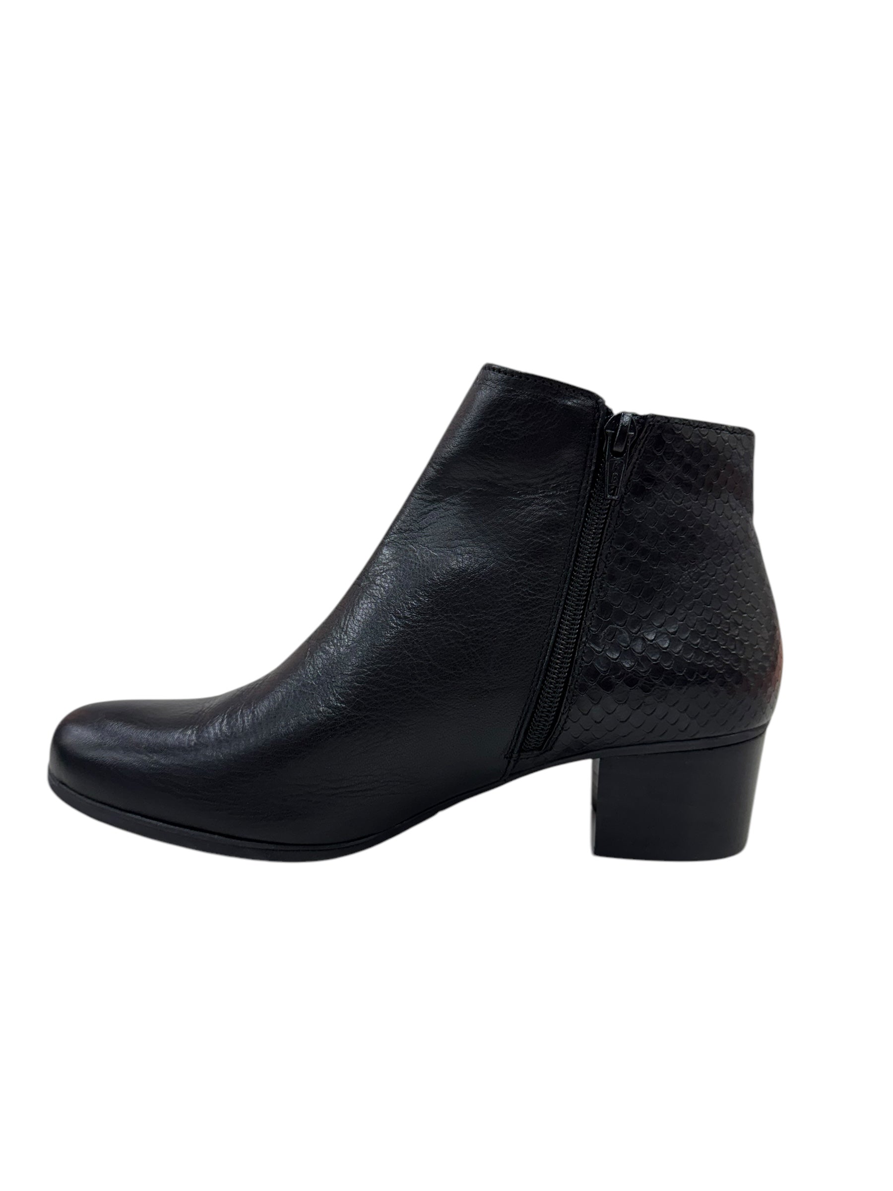 Step out in style with the Gambia boots! These sleek black boots feature a leather upper and a small heel for a touch of sophistication. The rounded toe adds comfort, while the playful animal print detailing on the back adds a unique touch. Dress them up or down for any occasion.
