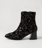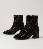 Dazzling to behold, these heeled ankle boots are made for nighttime glamour. GIMMIE by Laguna Quays is a simple silhouette highlighted by its sequined finish and flared block heel.