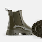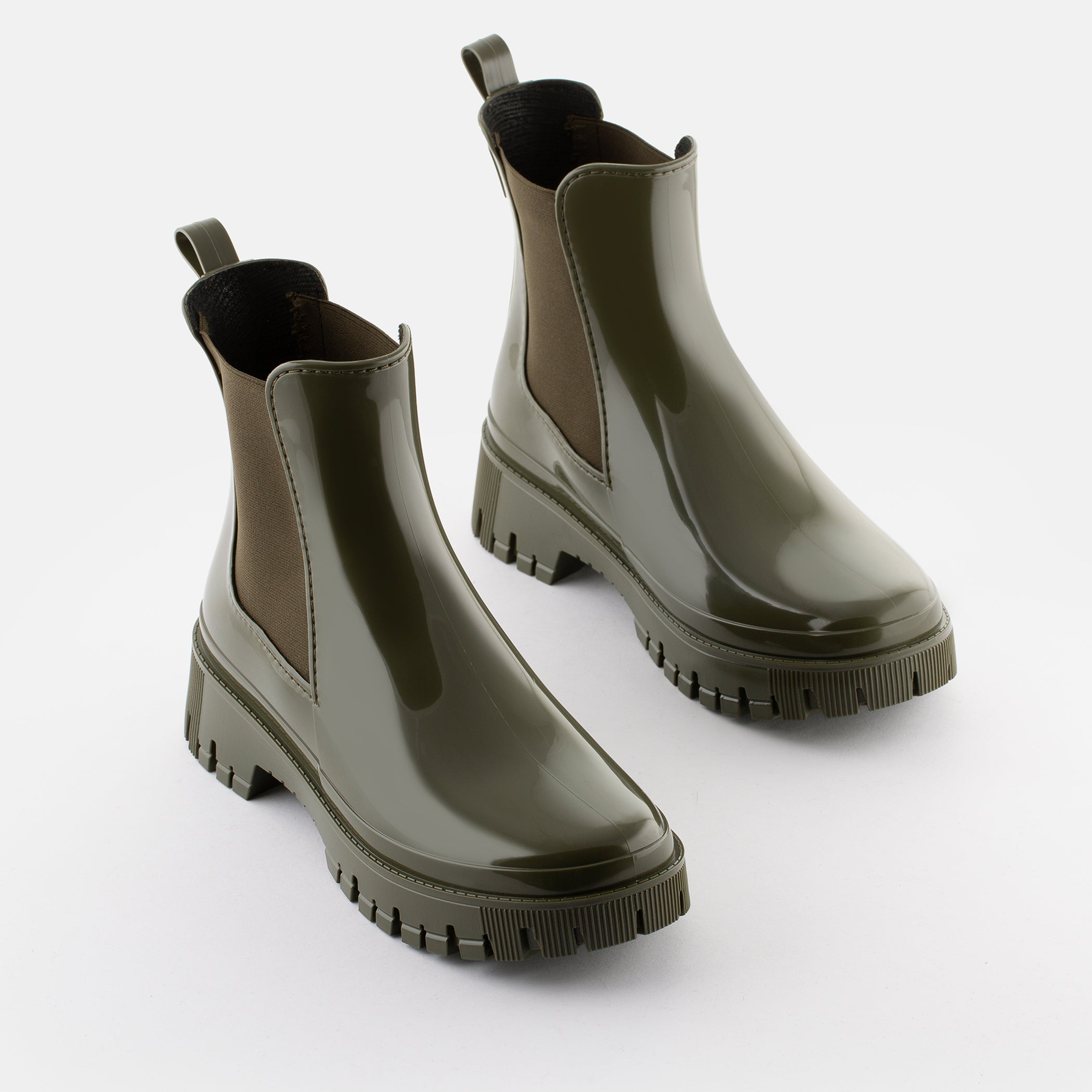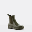 One-piece Chelsea boots in an always trendy military green across seasons. Ready to endure all terrains with its 4cm heel and eager to match your versatile outfits, go straight from work to a gathering with friends. Produced in a factory run by renewable energy, and using a special injection process to reduce its impact and waste, also allowing a more efficient recycling process when reaching the end of its use. Vegan boots with unforgettable lemon scent and a comfortable, breathable insole.