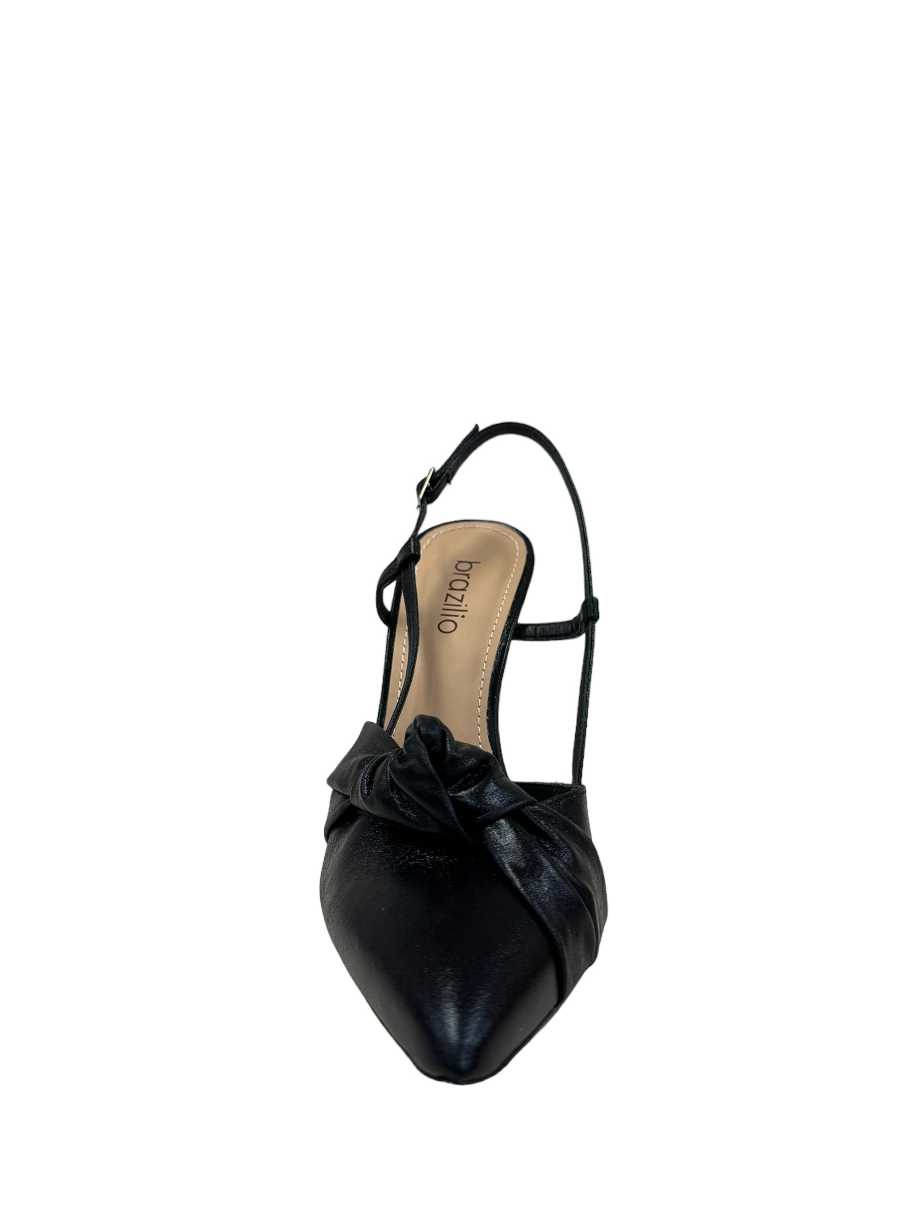 Step up your shoe game with the Bobby Black Heels. Made in Brazil, these slingback heels feature luxurious black leather and a chic knot detail. Elevate any outfit with these sophisticated and exclusive heels.