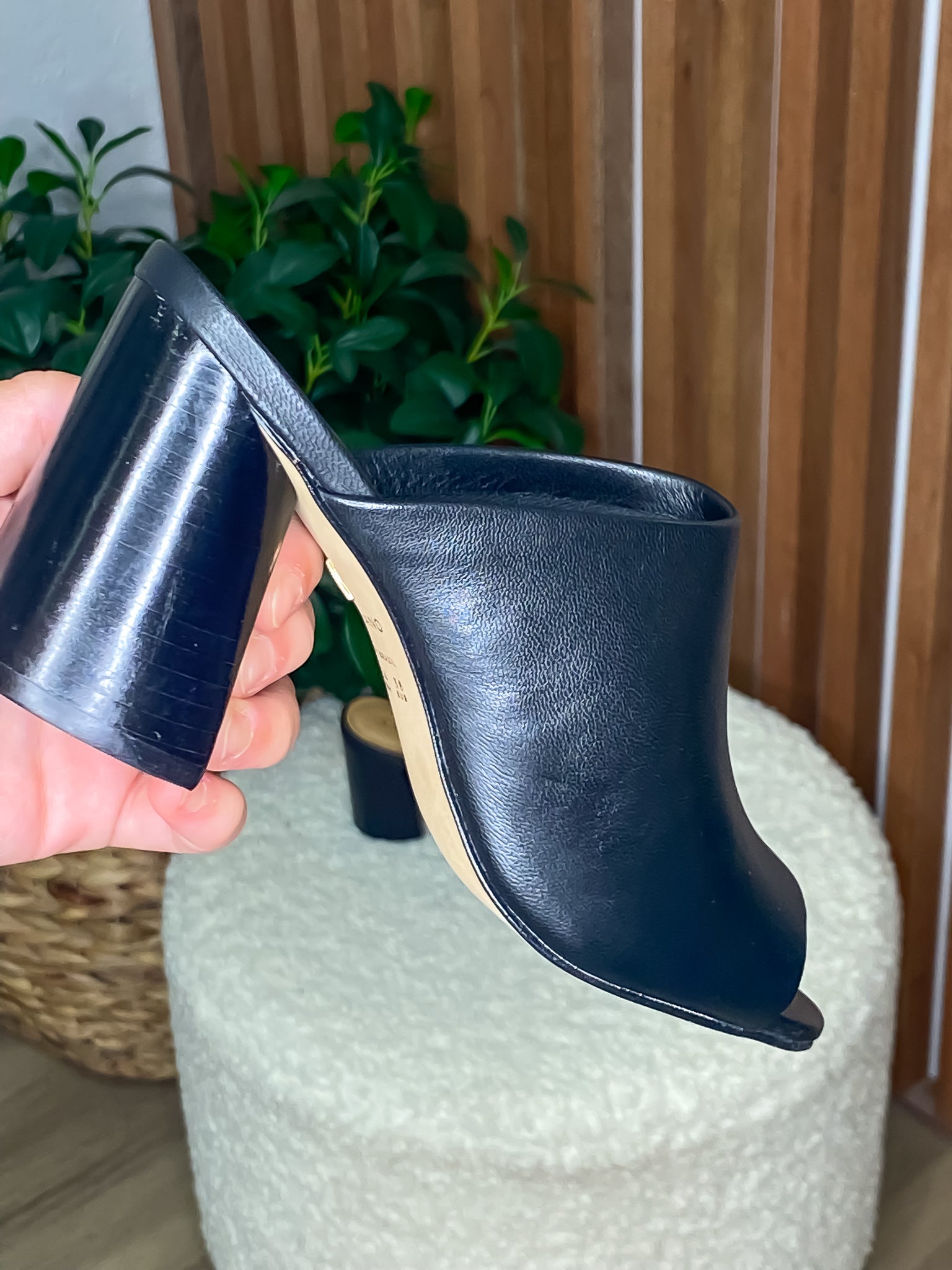 Black Leather Mule