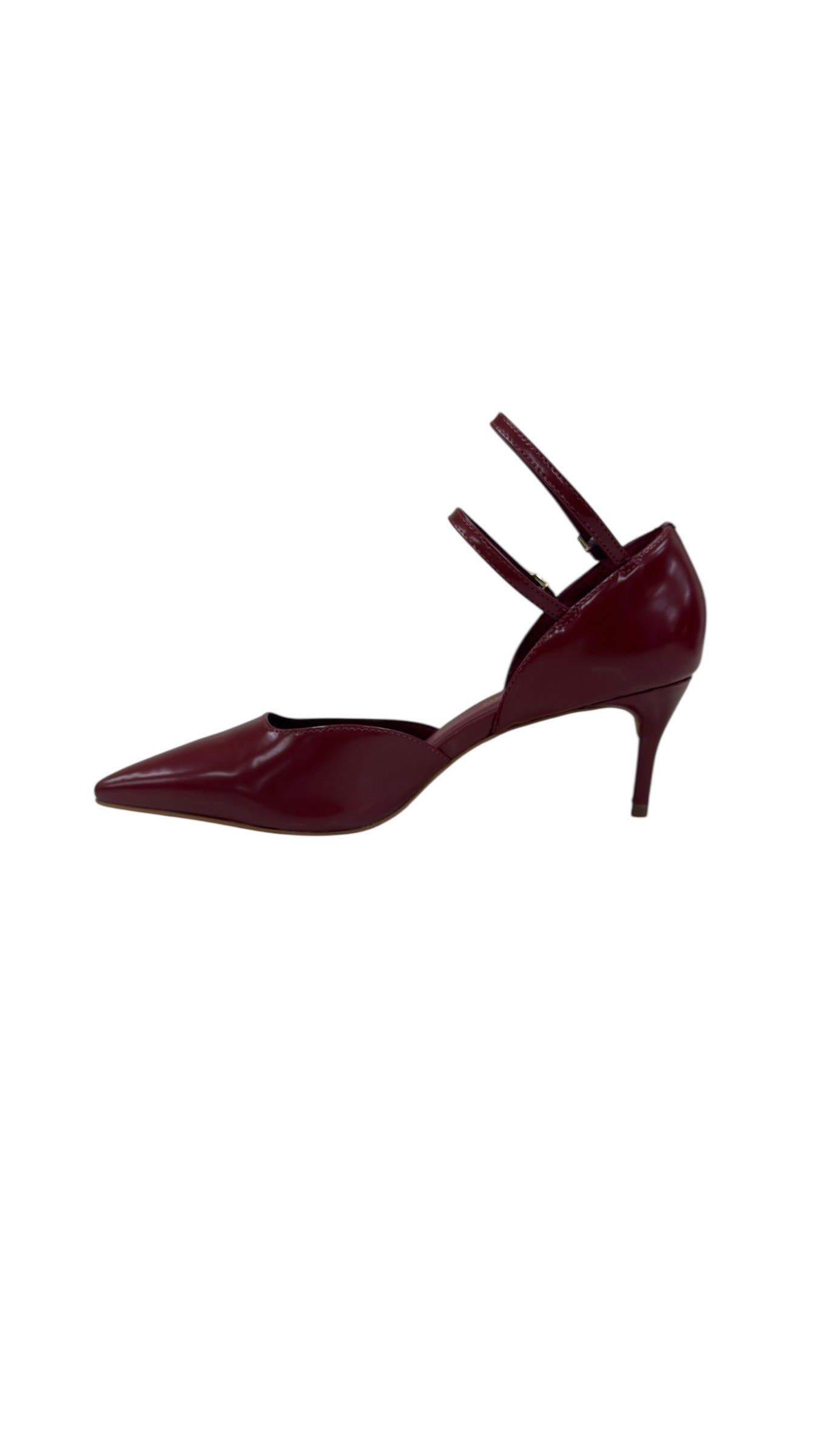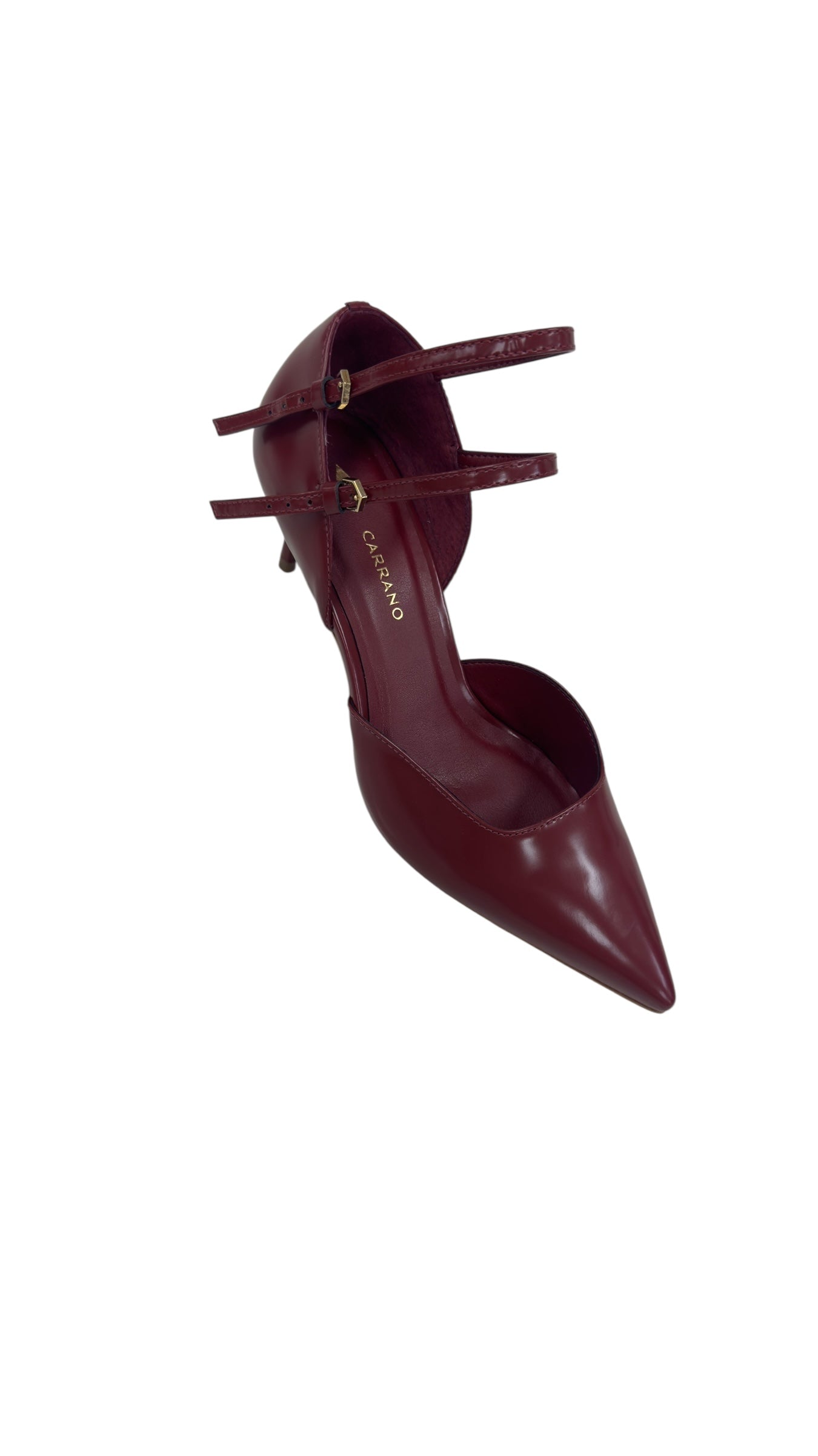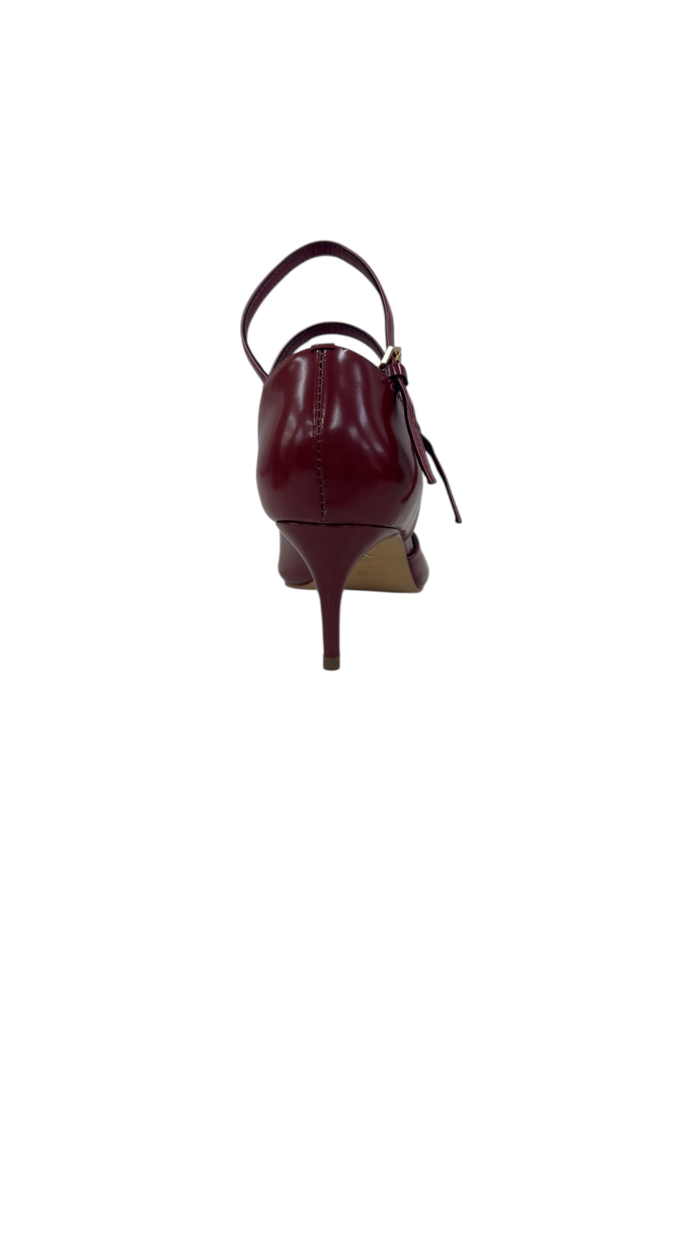 Step out in style with the Box Syrah kitten heel, featuring a rich burgundy shade that adds a pop of color to any outfit. Its closed pointed toe offers a sleek silhouette, while two buckle details bring a fun, flirty touch. Perfect for those who love a playful twist on classic elegance.