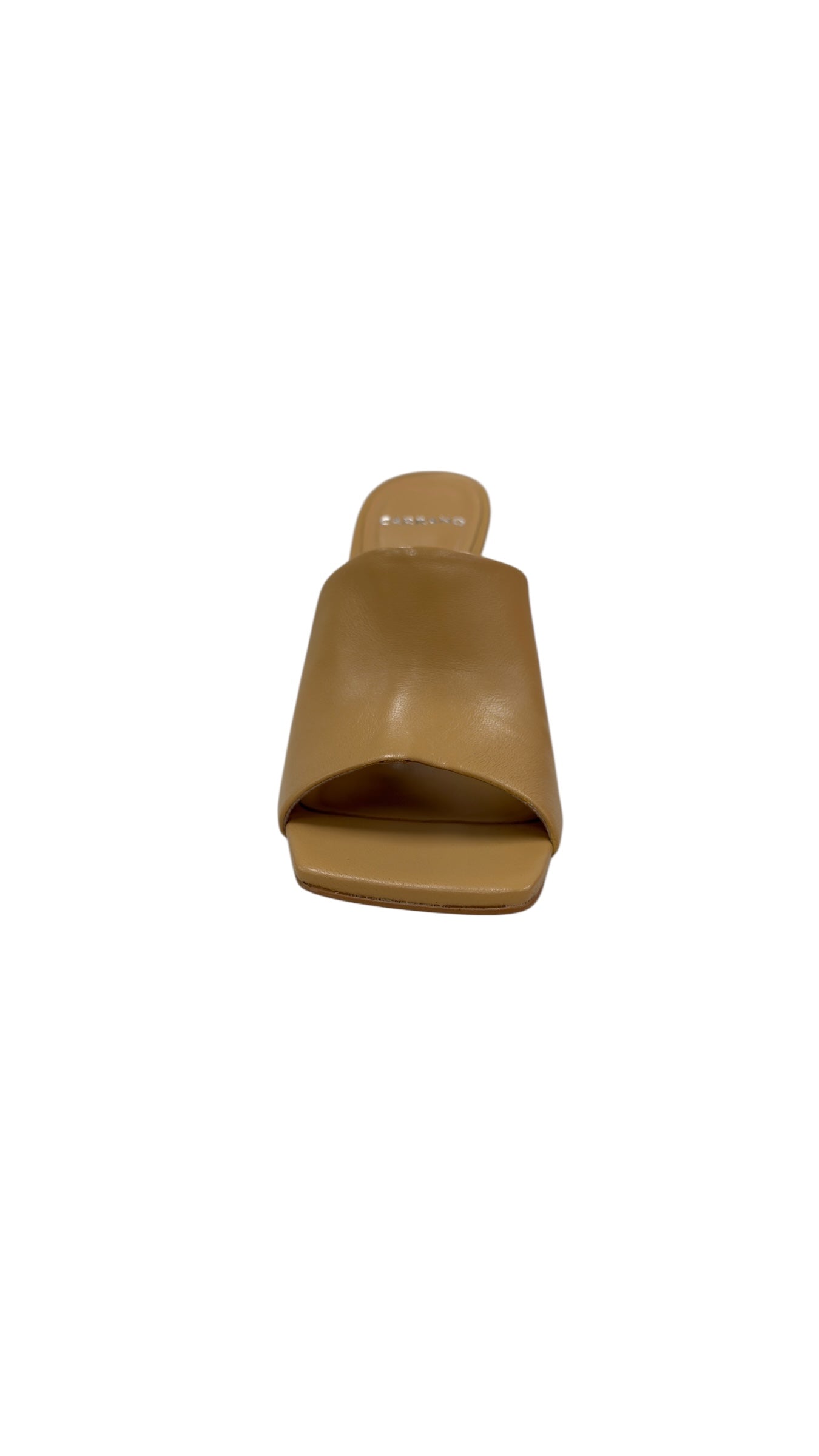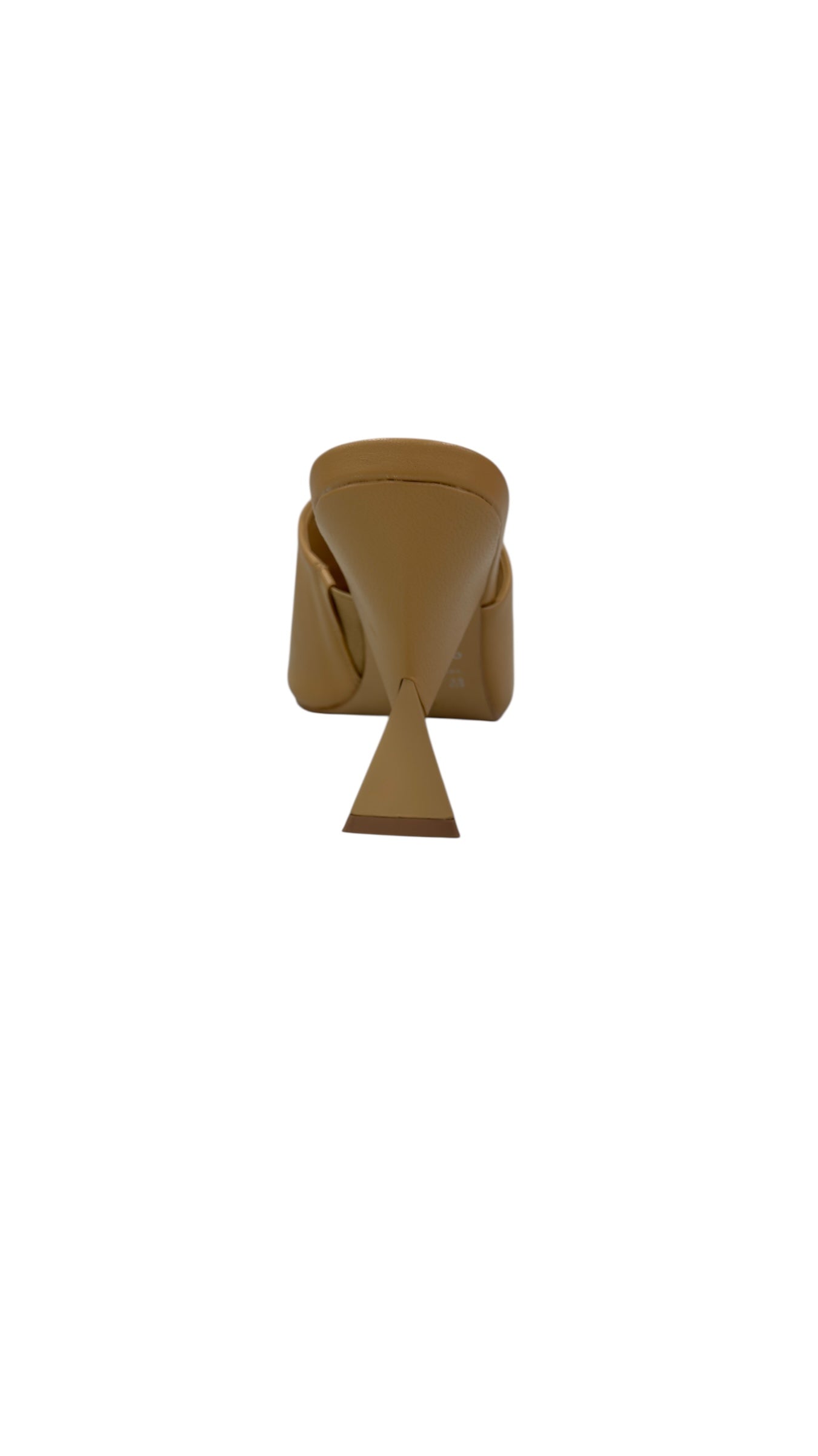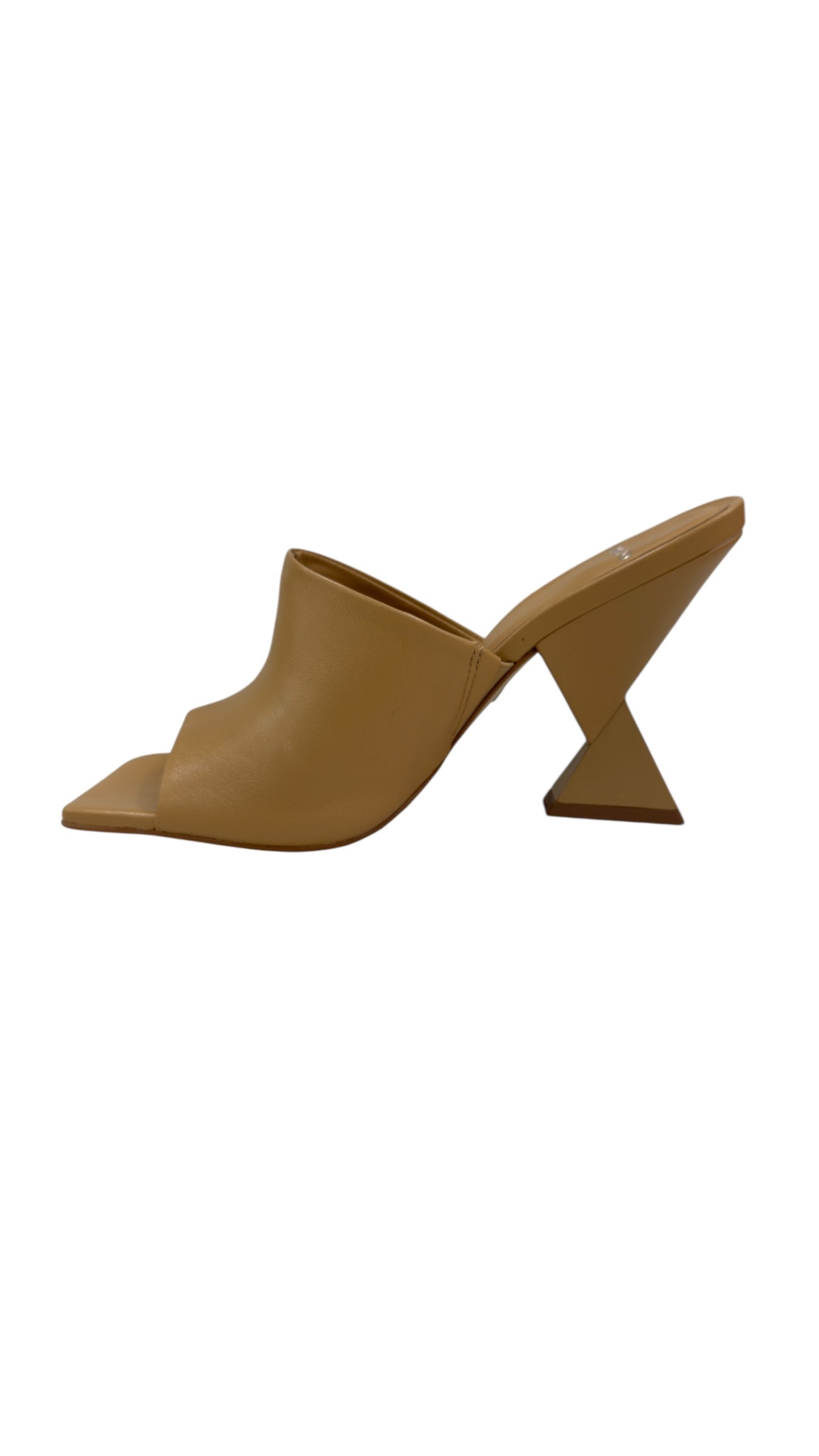Step out in style with the Kesta, featuring a funky asymmetrical tan heel that adds a playful twist to your look. Its simple, sleek cover across the foot keeps things effortlessly chic, making it the perfect choice for those who love a bit of fun with their fashion.