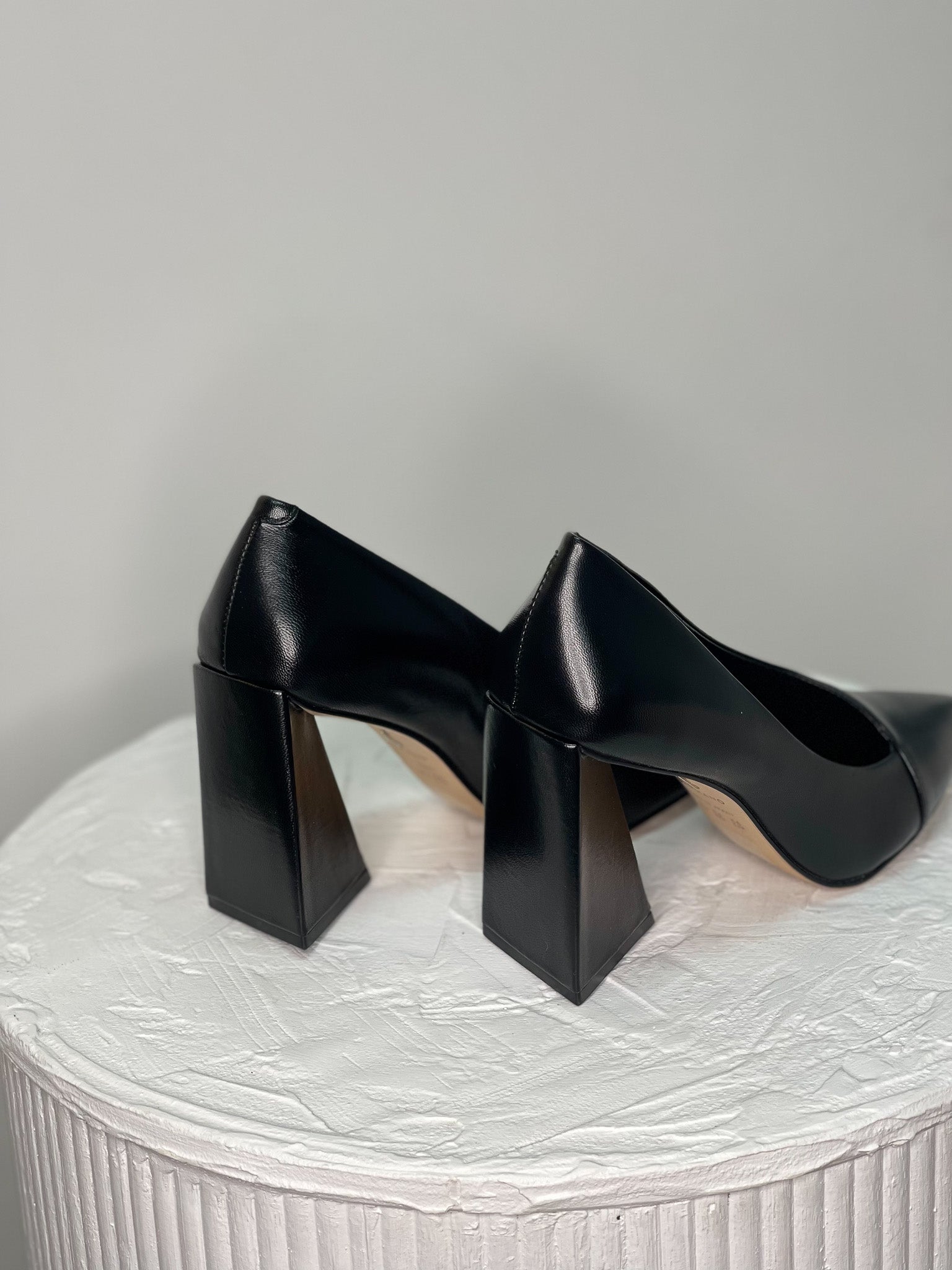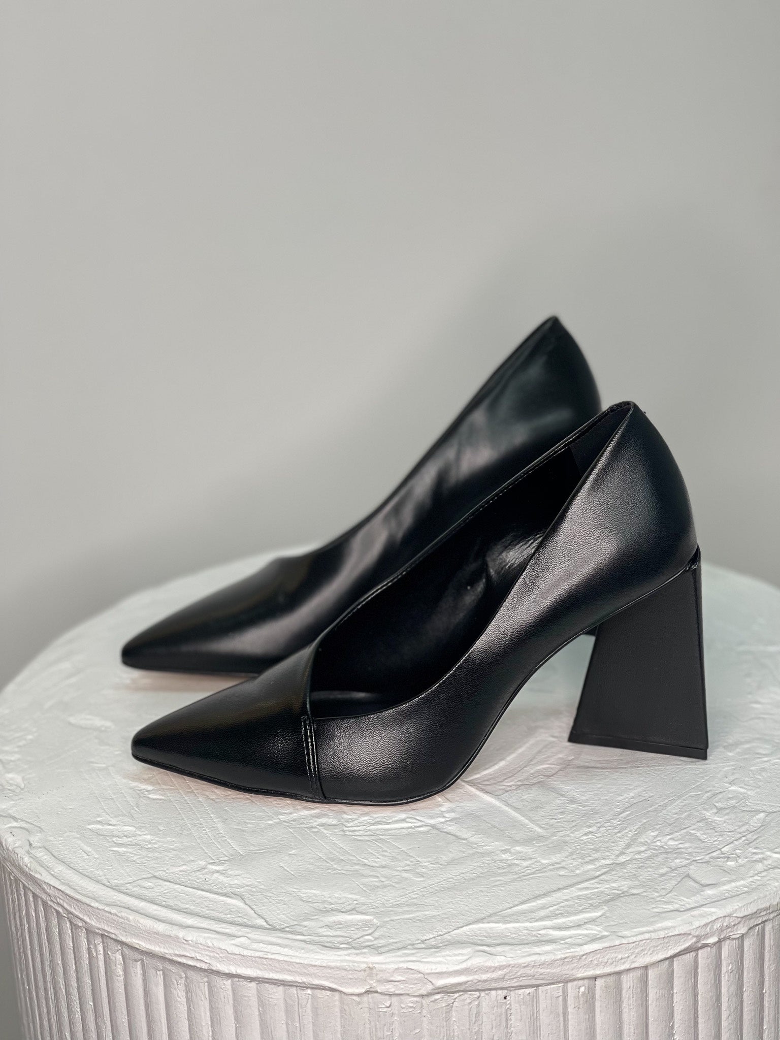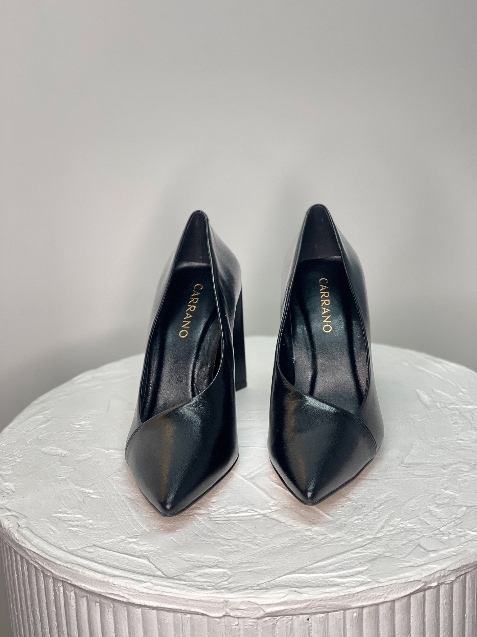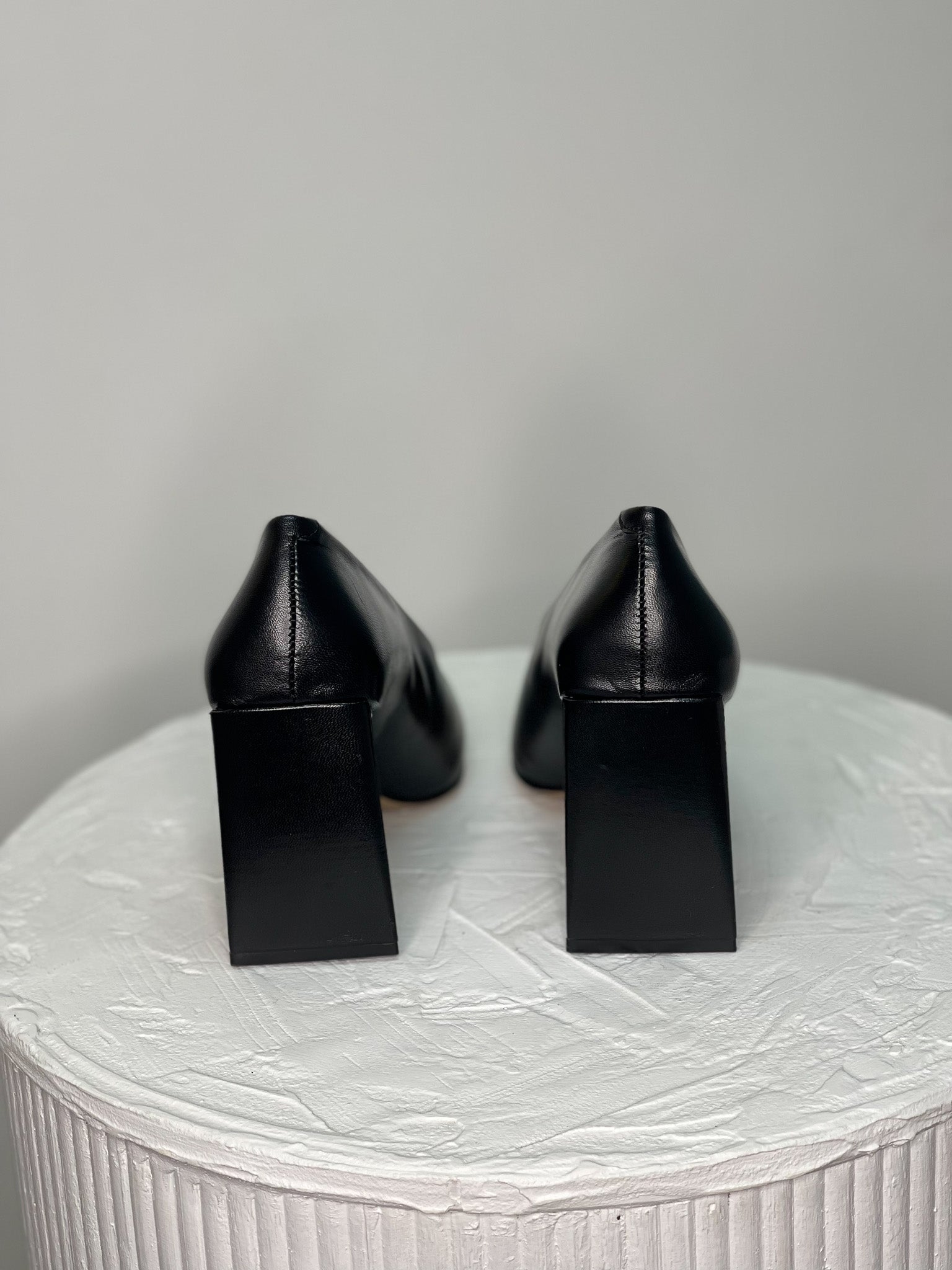 The Lou Heel in black is a timeless staple for the modern wardrobe. Crafted from smooth black leather, the Lou Heel features a chic block heel for chic style that transitions effortlessly from office to date night. Its subtle twist of detail adds a hint of elegance to any look.