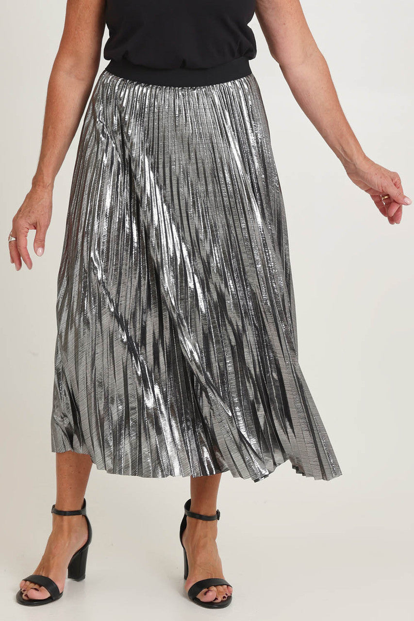 • Add a touch of glamour to your wardrobe with the Shimmer Pleated Skirt.