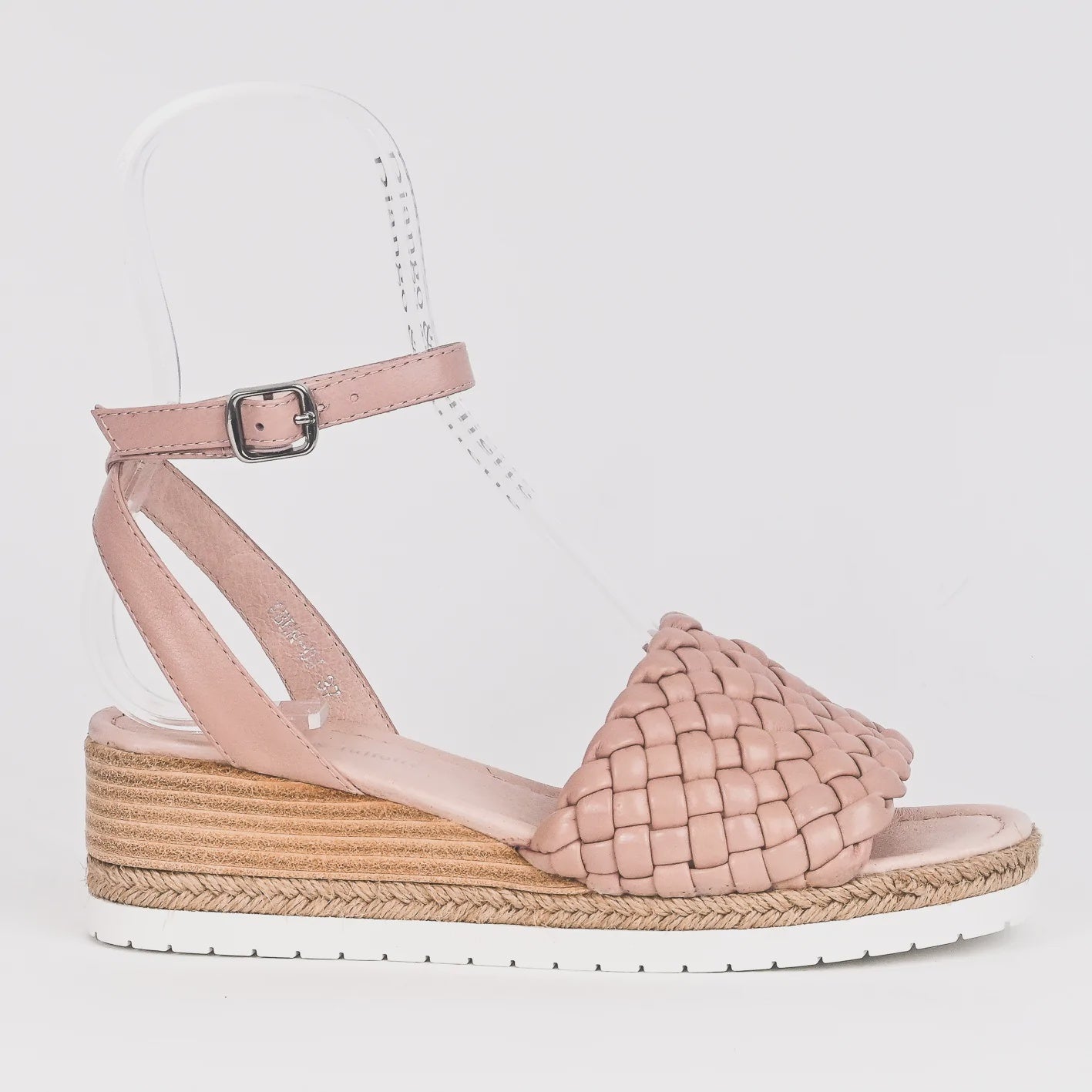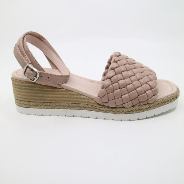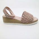 Add a touch of elegance to any outfit with Iben - Rose! This beautiful soft pink wedge features a woven leather detail and rope detail on the sole, complemented with a timber stack wedge. Dare to stand out and make a style statement!