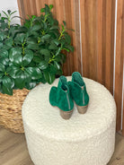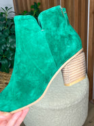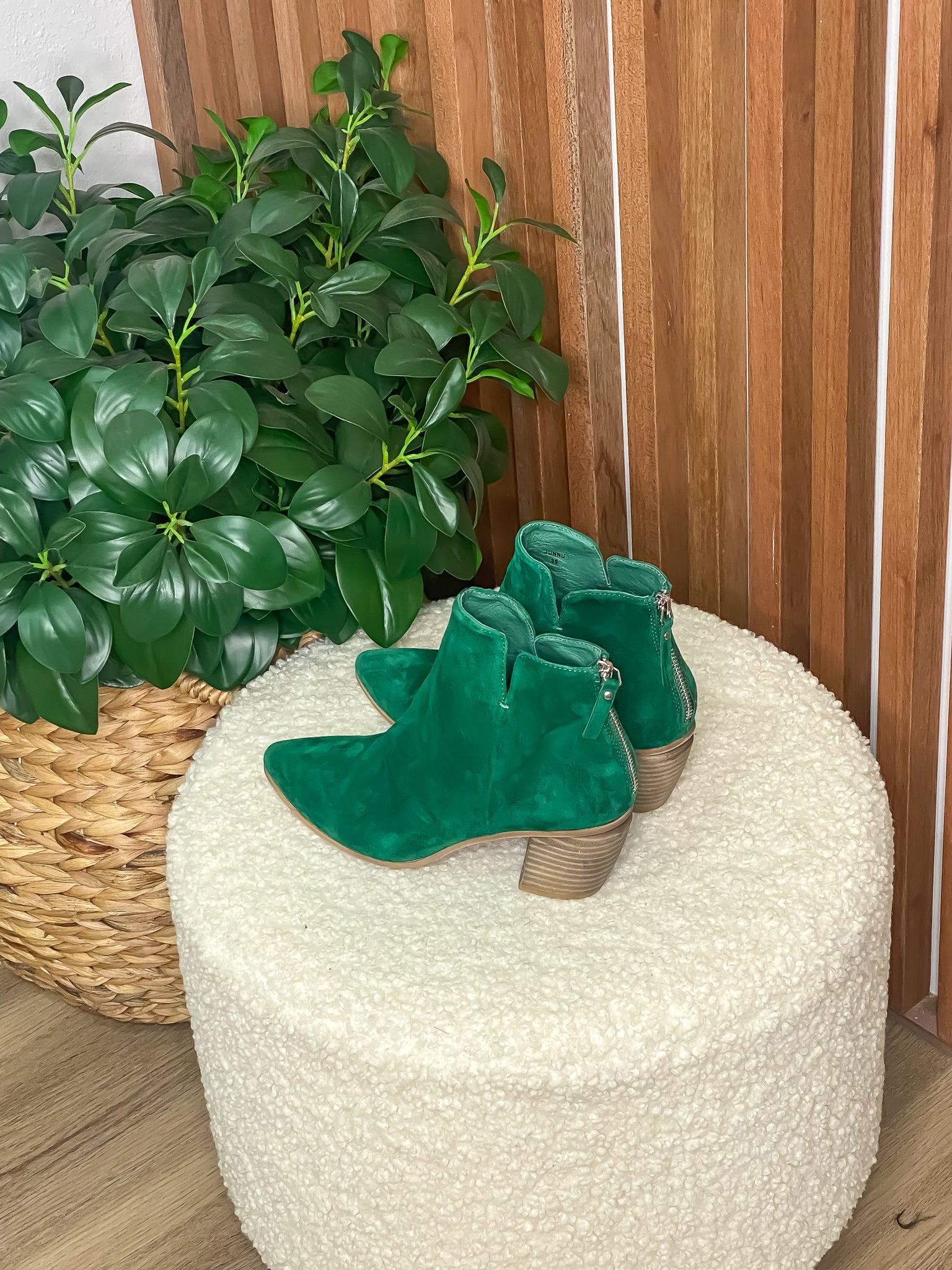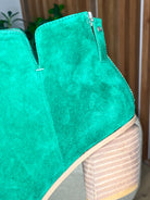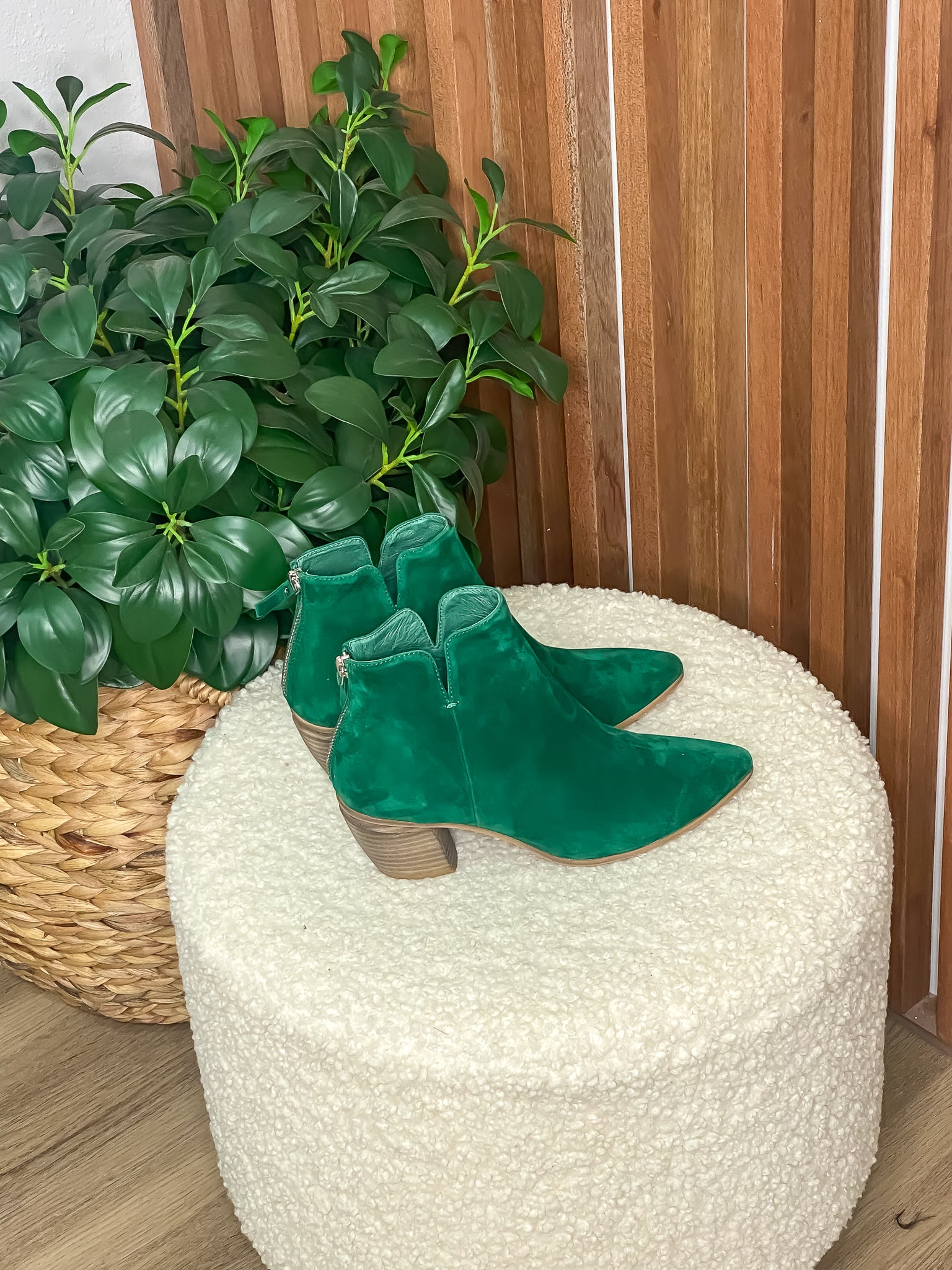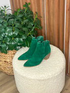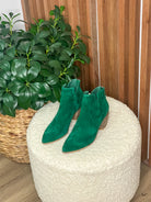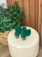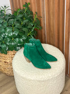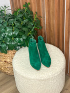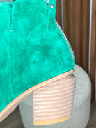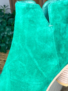 Step our in style in JUNNU this sleek cut boot is in a rich suede leather in a unique emerald colour way.
