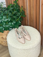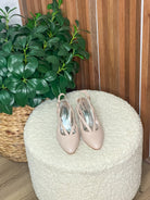 Introducing Kenzy - a stylish heel that brings together comfort and elegance. Crafted from blush nude leather, this block heel features an exquisite silver trim, creating a timeless look for the most discerning fashionista. Enjoy the perfect balance between dressy and comfortable, day or night.