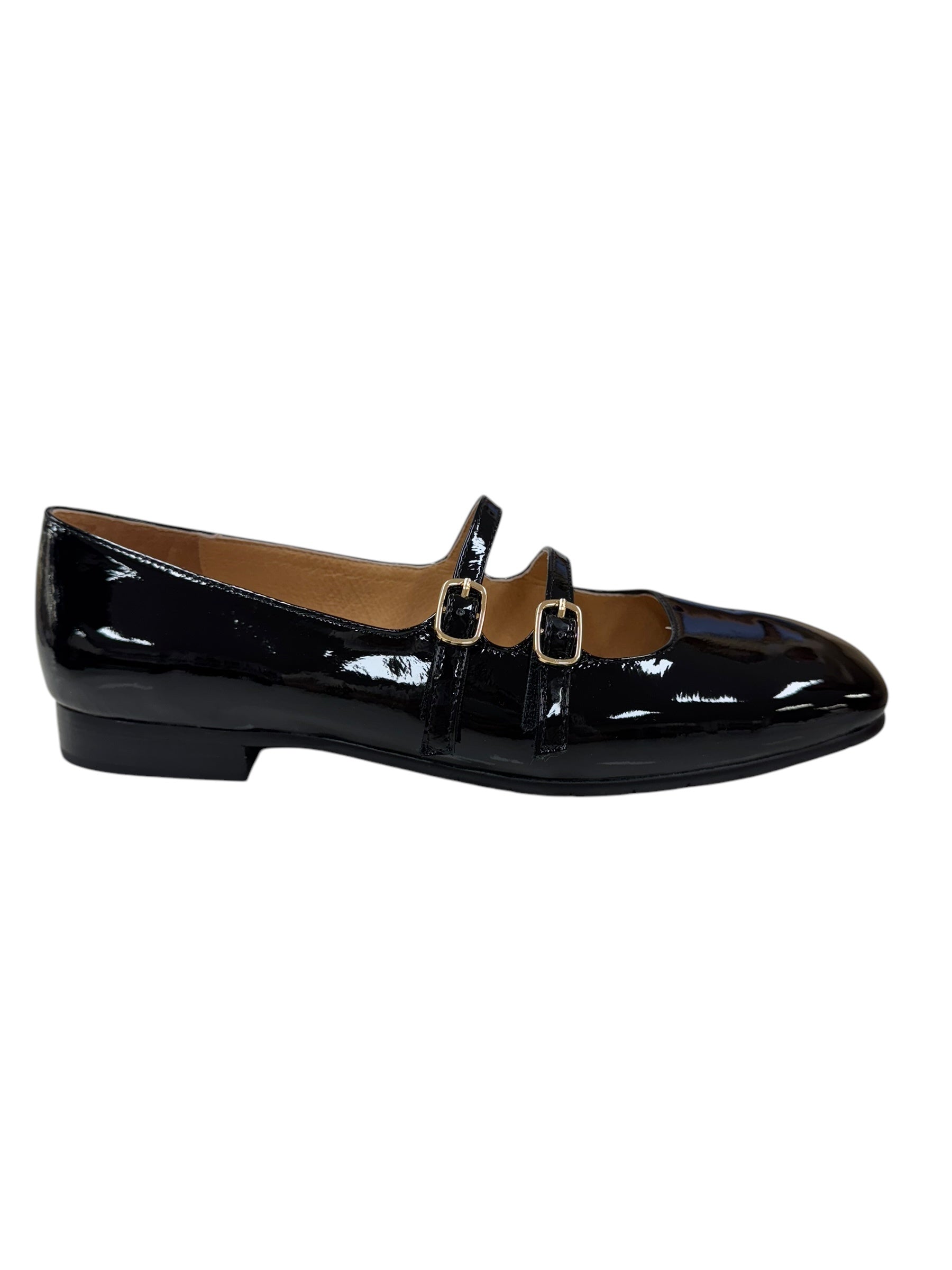 Introducing Payzee - sleek black patent flats with a playful twist. The classic mary jane style meets a square toe for a combination that's both sophisticated and quirky. Perfect for adding a touch of fun to any outfit. (No exclamation marks needed, our shoes speak for themselves!)