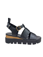With a sleek black leather design and comfortable wedge sole, the Relie sandals are perfect for summer days and nights. Experience effortless style and all-day comfort in one.