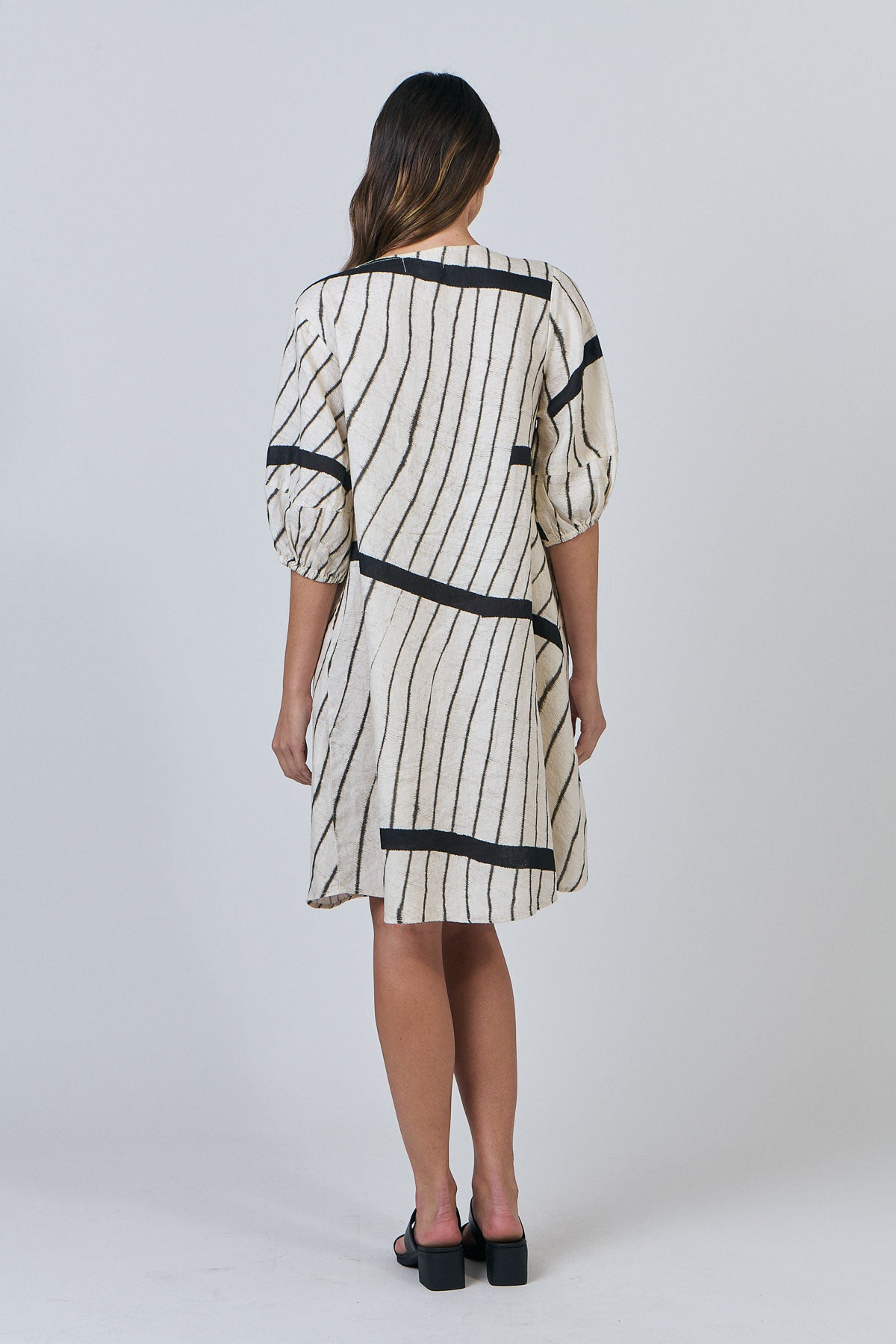 Simple made elegant. GA538 takes the simple and well loved A-line shaped dress and adds gorgeous elbow length lantern sleeves. The round neck and hemline that just grazes the knee ensures that this will be the most flattering dress you own. Made from 100% linen.