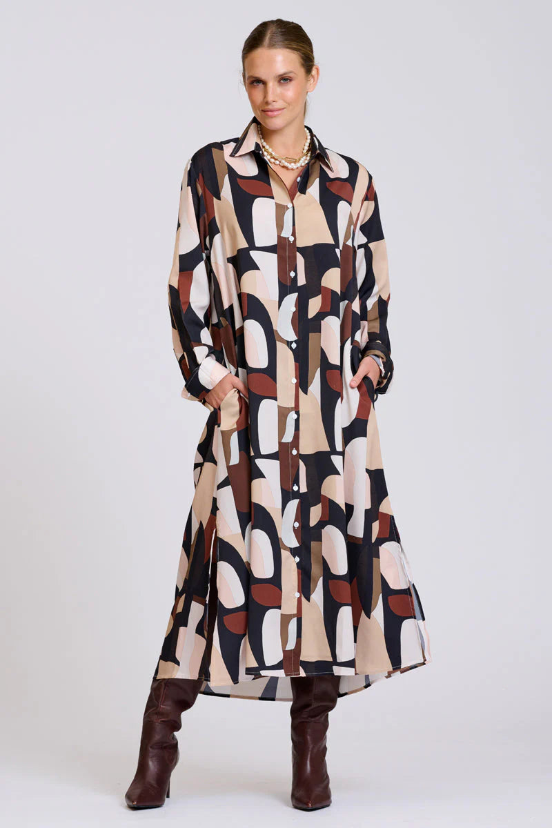 Luna, our bestselling longline, shirtdress. Silhouette get a LUXE update with these striking seasonal prints. She’s a generous cut, featuring pockets stunning side vents and a bold belt too. Wear Luna your way, she will be the hardest working item in your wardrobe this season!