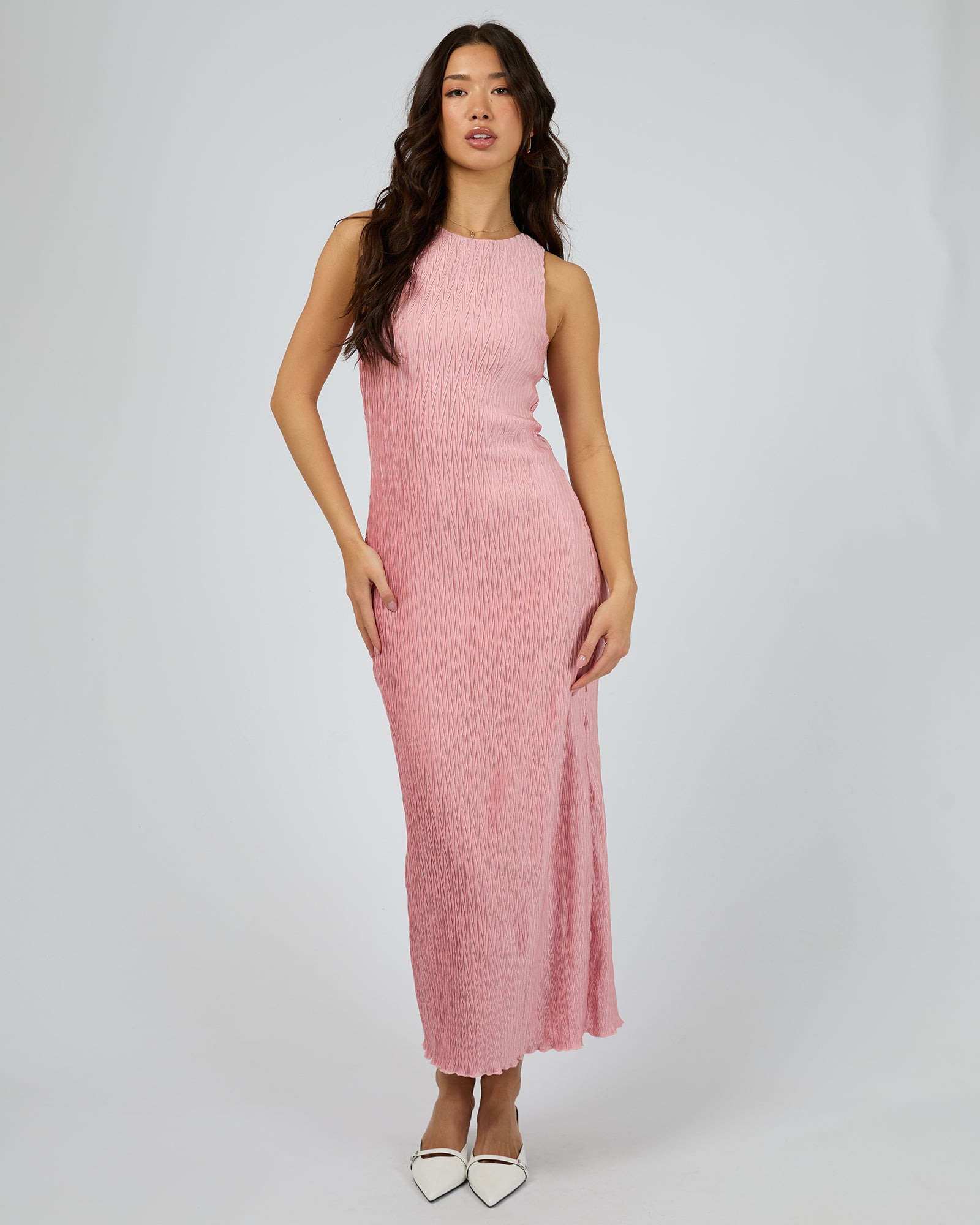 Stay chic and comfortable with our Jorge Savannah Maxi Dress in pink. Featuring a round neck and textured design, this maxi dress is perfect for any event. Its invisible zip adds a touch of elegance. Pair with heels for a flawless look.