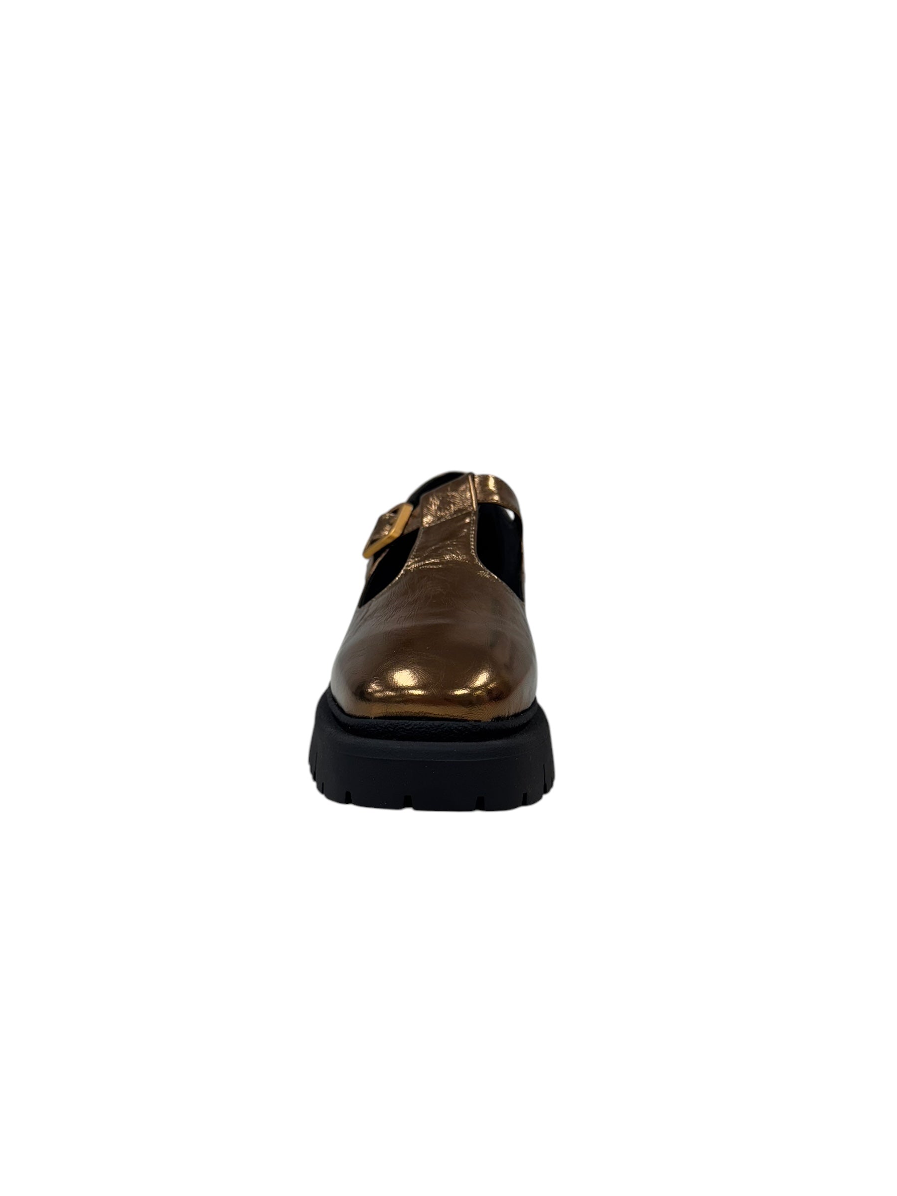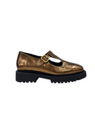 Strut your stuff in style with Carmen - Bronze! This chunky metallic flat is both funky and functional, perfect for any fashion-forward individual. Proudly made in Spain, it's time to step up your shoe game with this unique and playful addition to your wardrobe. OLE! (Sorry, not sorry)