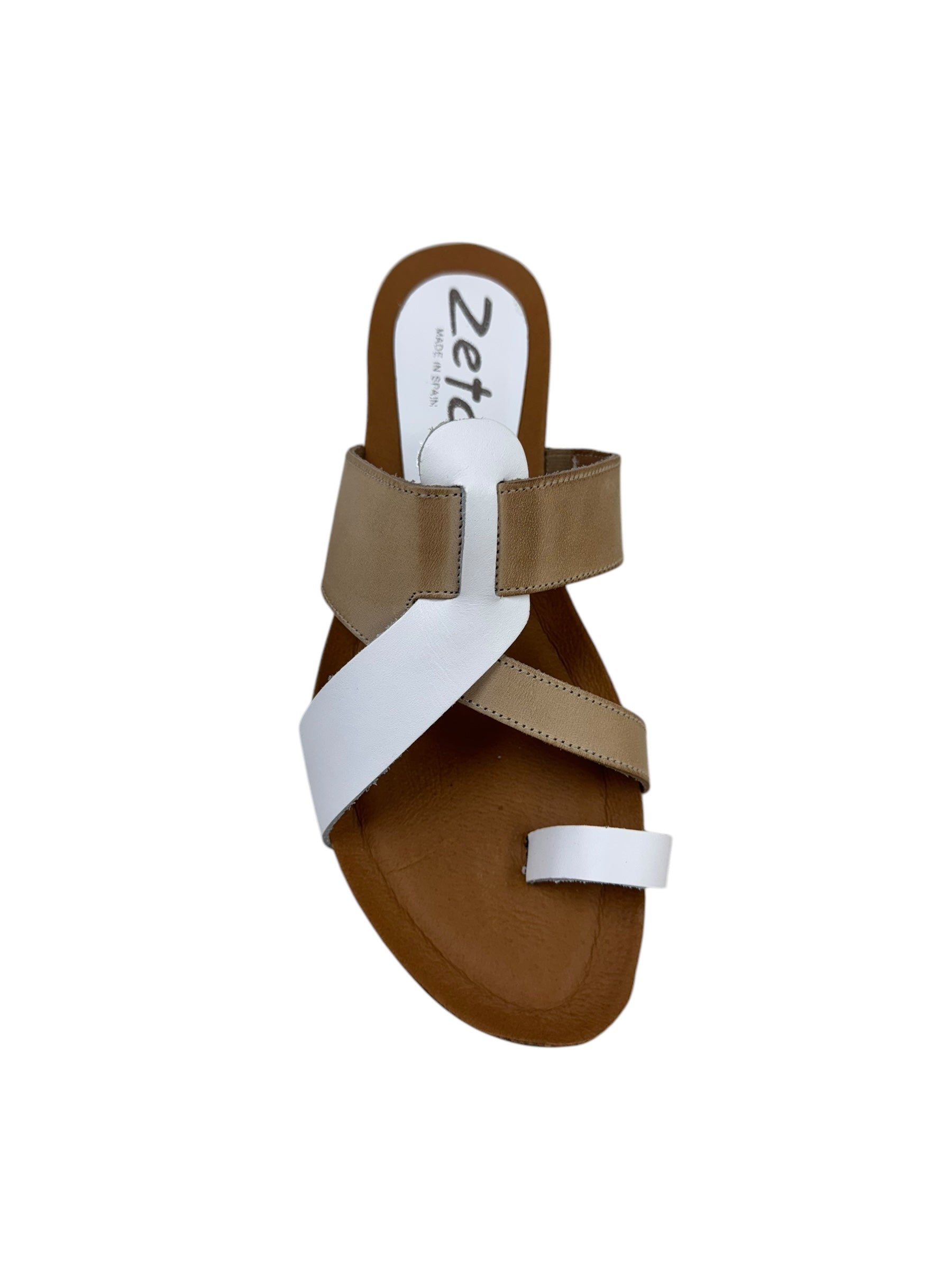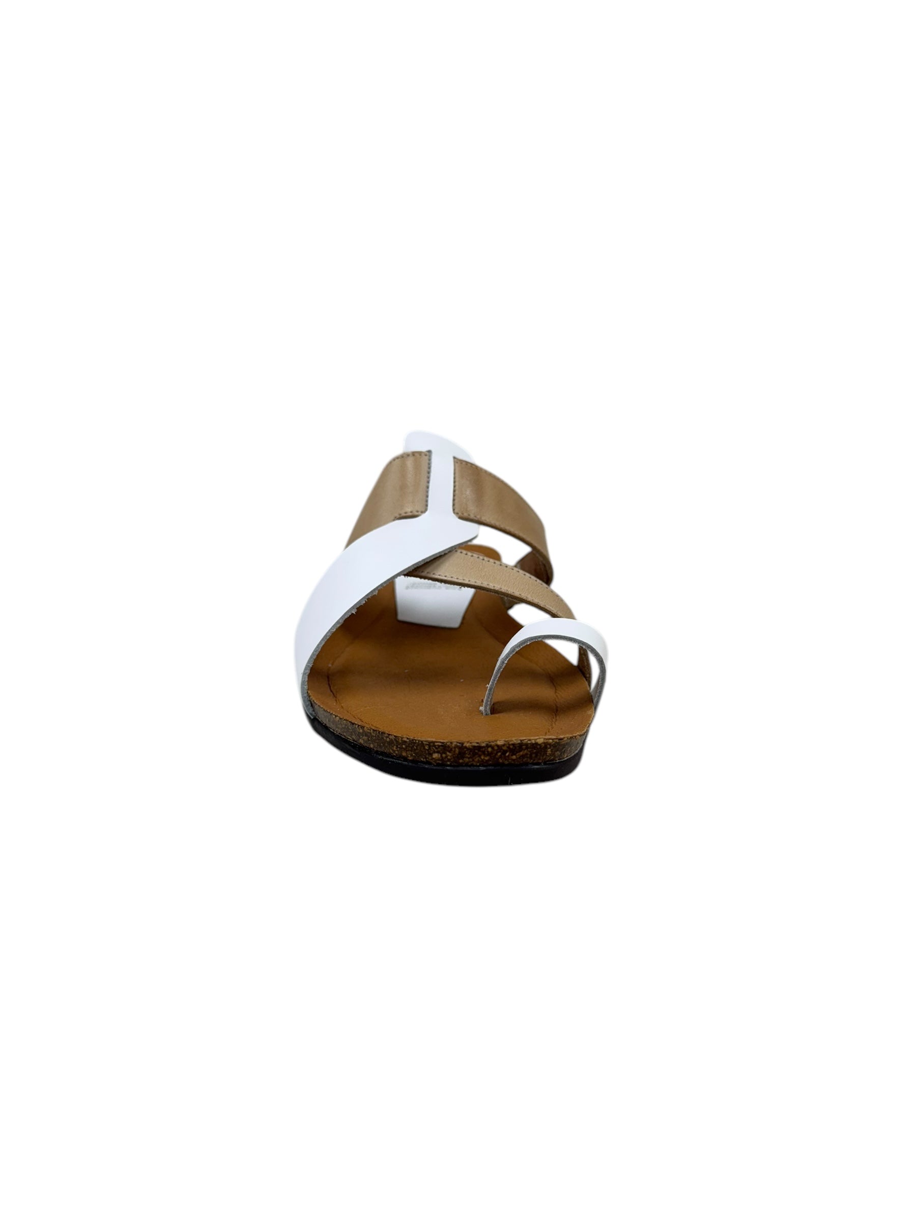 Meet Rommy, the quirky yet practical shoe for everyday wear. The comfy leather upper and synthetic sole provide all-day comfort, while the crossover straps add a touch of style. With a mix of white and natural, these flats are sure to become your go-to choice!