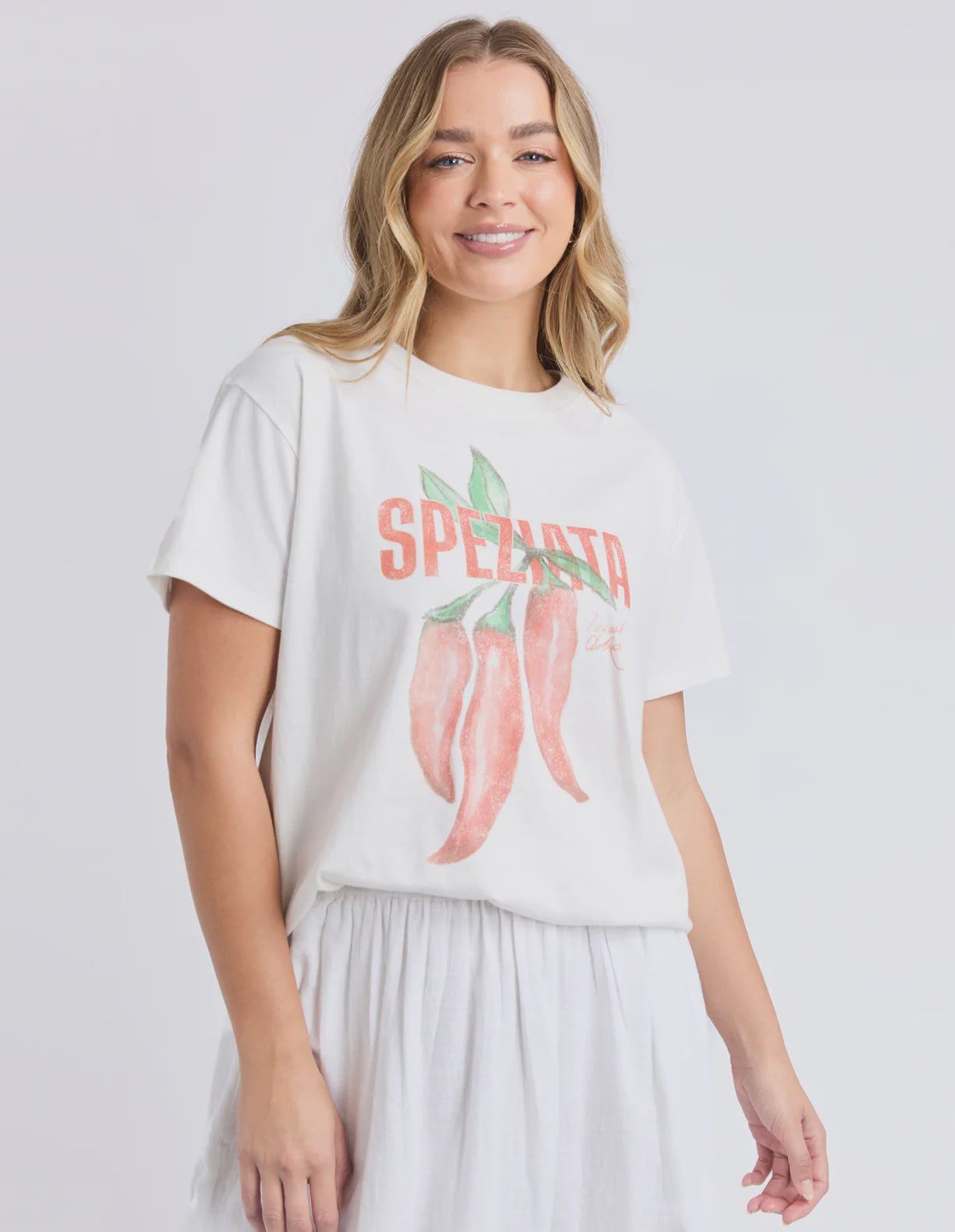 Turn up the heat with the Speziata Tee, your new go-to for adding a little spice to your everyday style. Featuring a bold chilli print and relaxed fit, this 100% cotton tee brings Italian flair and fun to any outfit. Pair it with denim or linen for a look that’s as fresh as it is fiery.