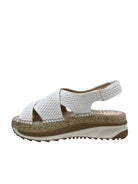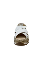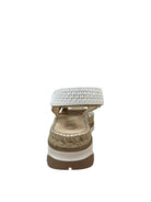 Get ready to elevate your style with Vareli! These edgy sandals feature a platform sole and fabric across the foot for a unique touch. The adjustable velcro ankle strap adds both style and comfort. Step into the trend with Vareli in white.