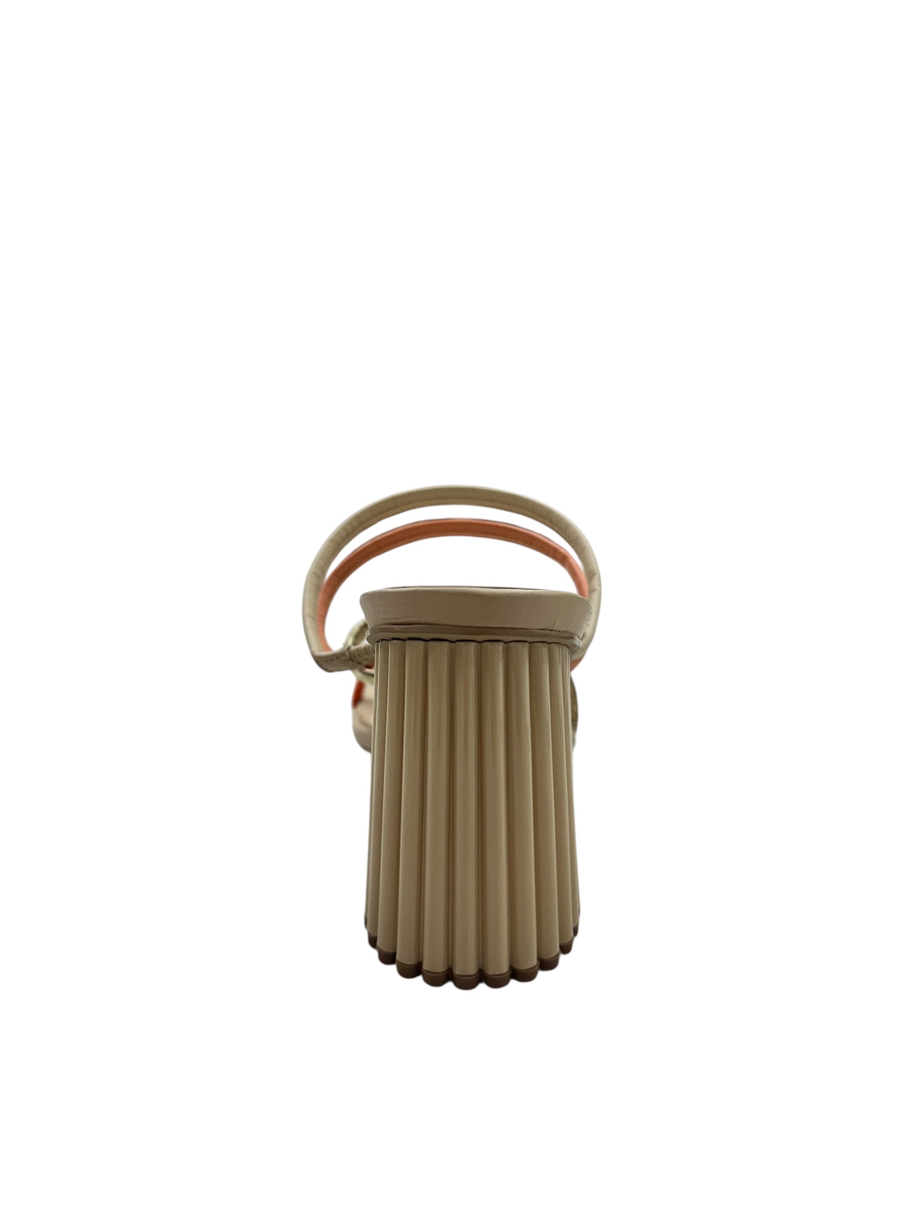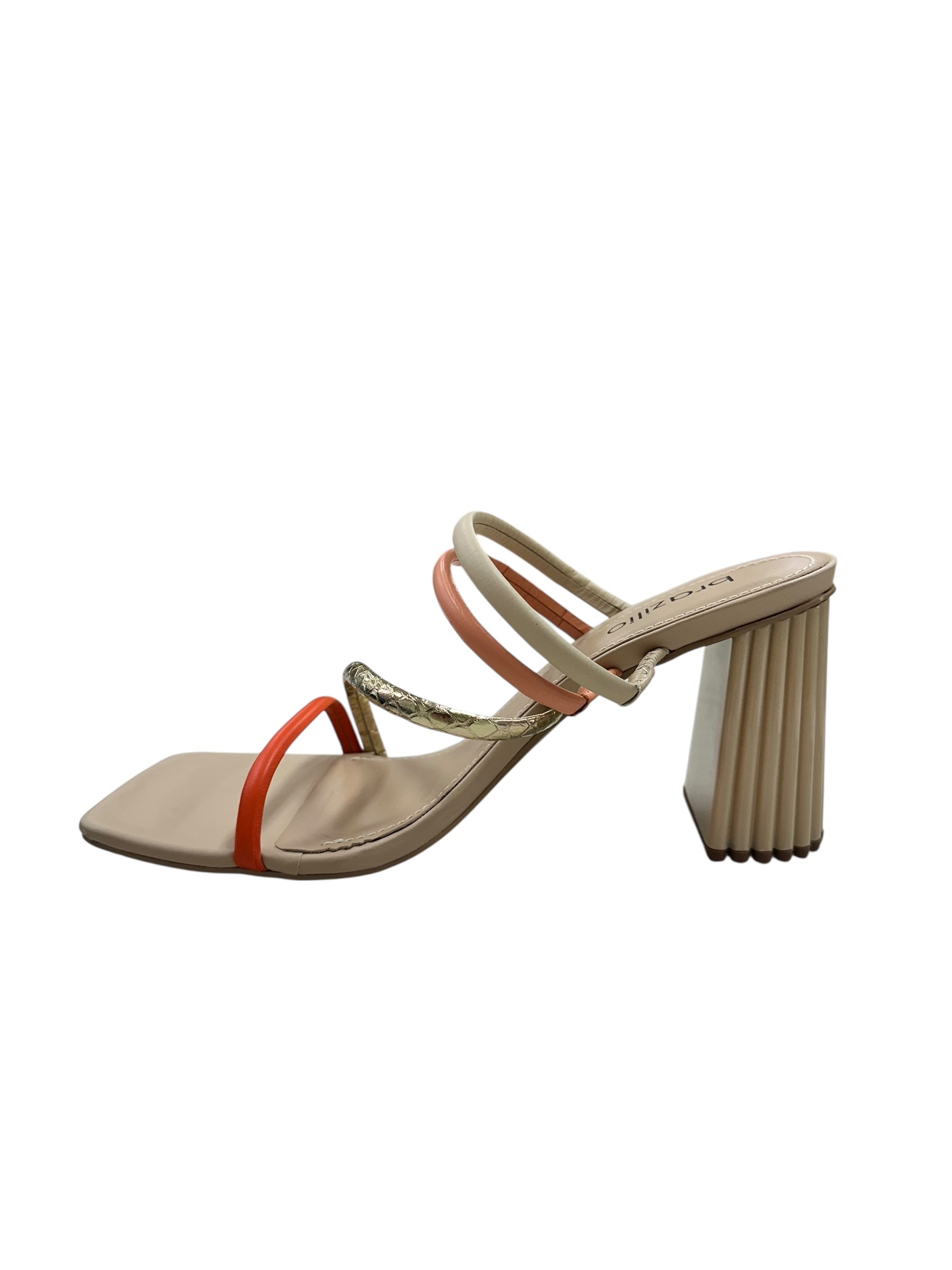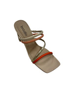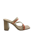 Step out in style with these playful block heels featuring a chic nude base accented with shimmering gold and vibrant orange details. The strappy design gracefully wraps over the foot and toes, offering both support and a flirty look. Perfect for adding a pop of color and a confident bounce to any outfit.