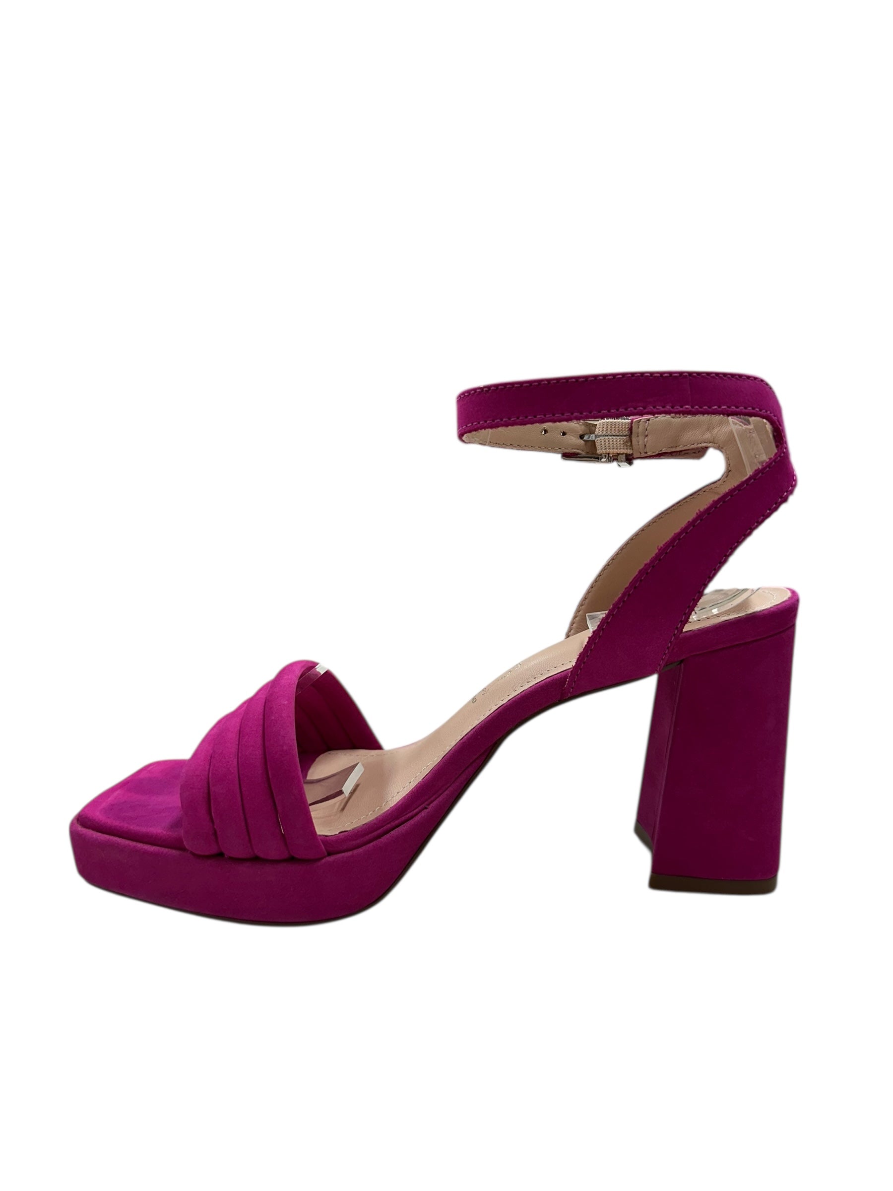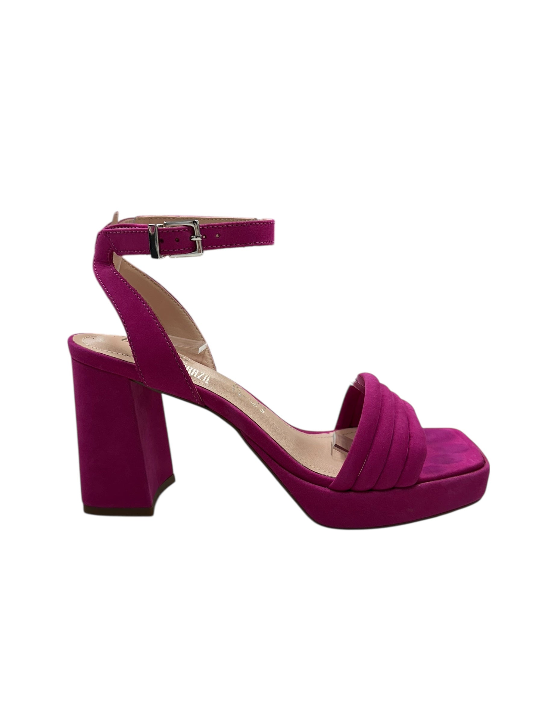 Step into statement-making style with the Russia—a hot pink suede block heel that demands attention. The adjustable ankle strap ensures a custom fit that moves with you, whether you're heading to brunch or a night out. Comfort meets boldness in this playful essential that transforms any outfit from ordinary to unforgettable.
