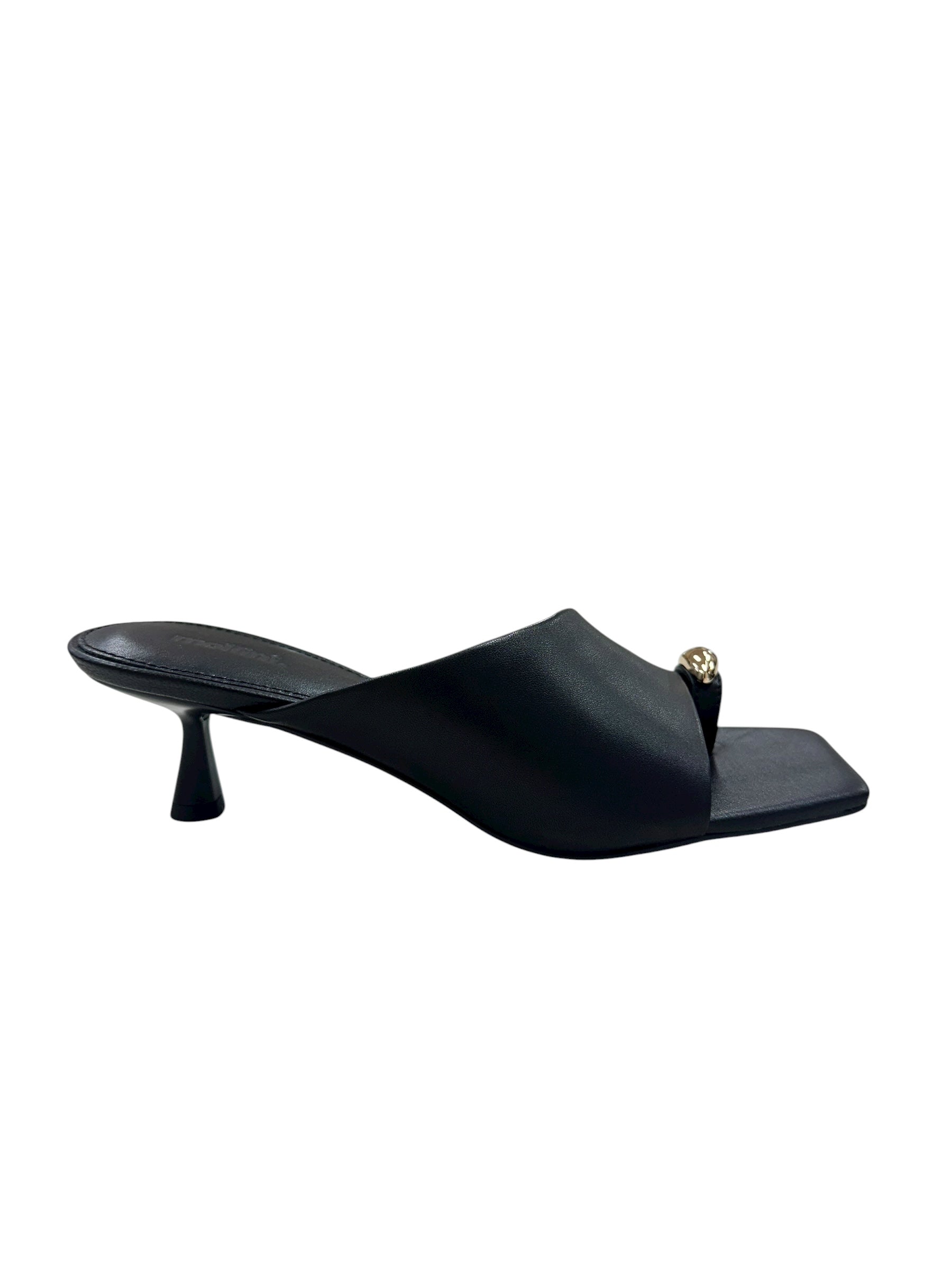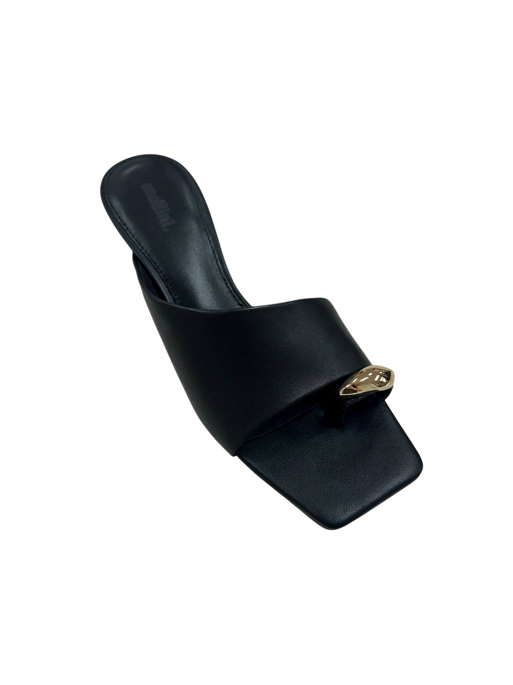 Step into style with the Toinee—sleek black low heels featuring a chic toe loop accented by shiny gold hardware. Crafted with supple leather upper and lined inside for comfy wear, these heels add a playful twist to any outfit while keeping your feet happy all day.