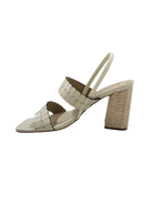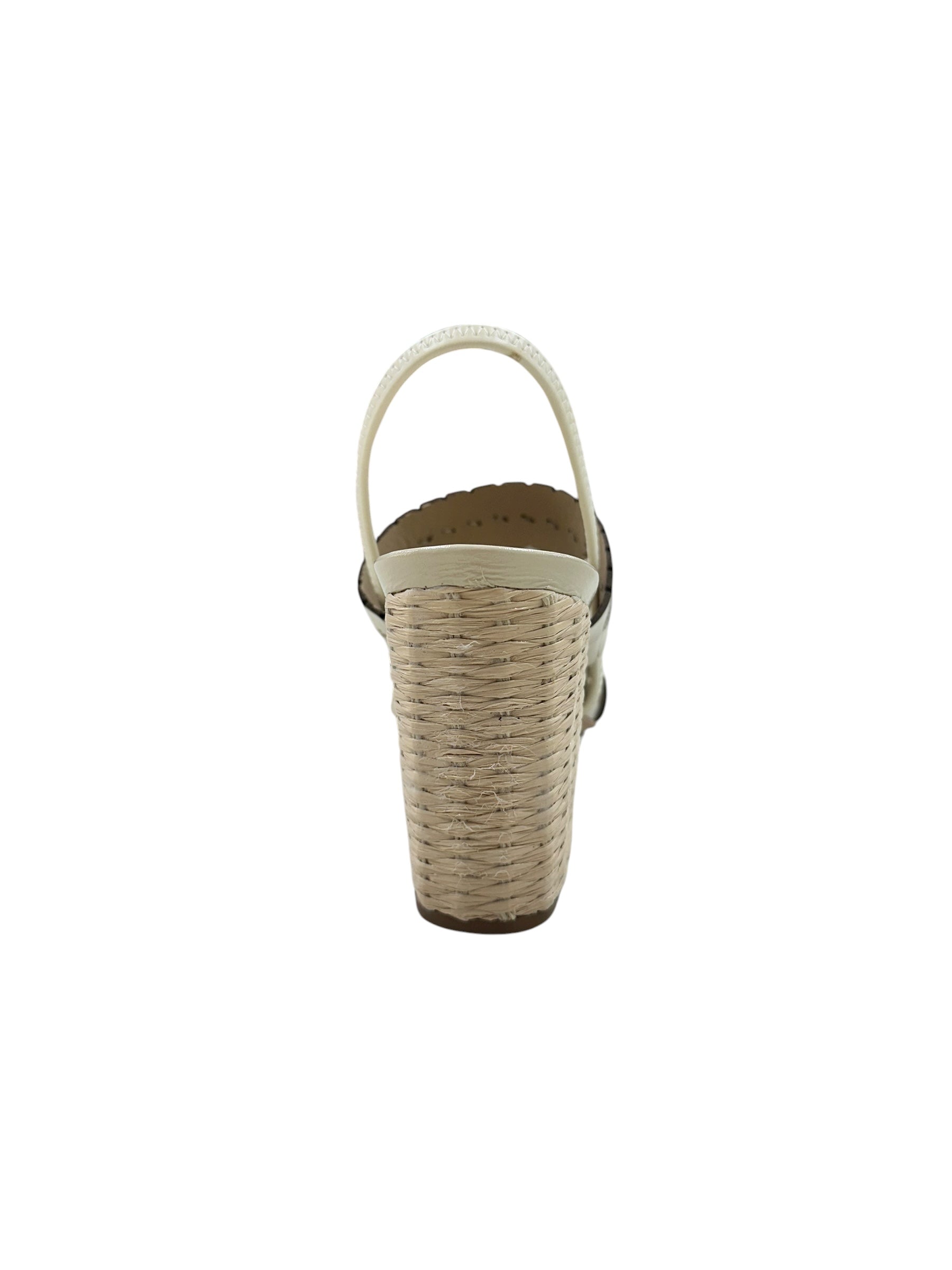 Step out in style with the Wet Off White, featuring a chic block heel and a playful off-white shade that brightens any outfit. The elastic strap around the heel ensures a comfy fit, while the natural weave detail adds a touch of earthy charm. Two beautiful straps cross over the toes and foot, blending elegance with a breezy, casual vibe perfect for sunny days or nights out.