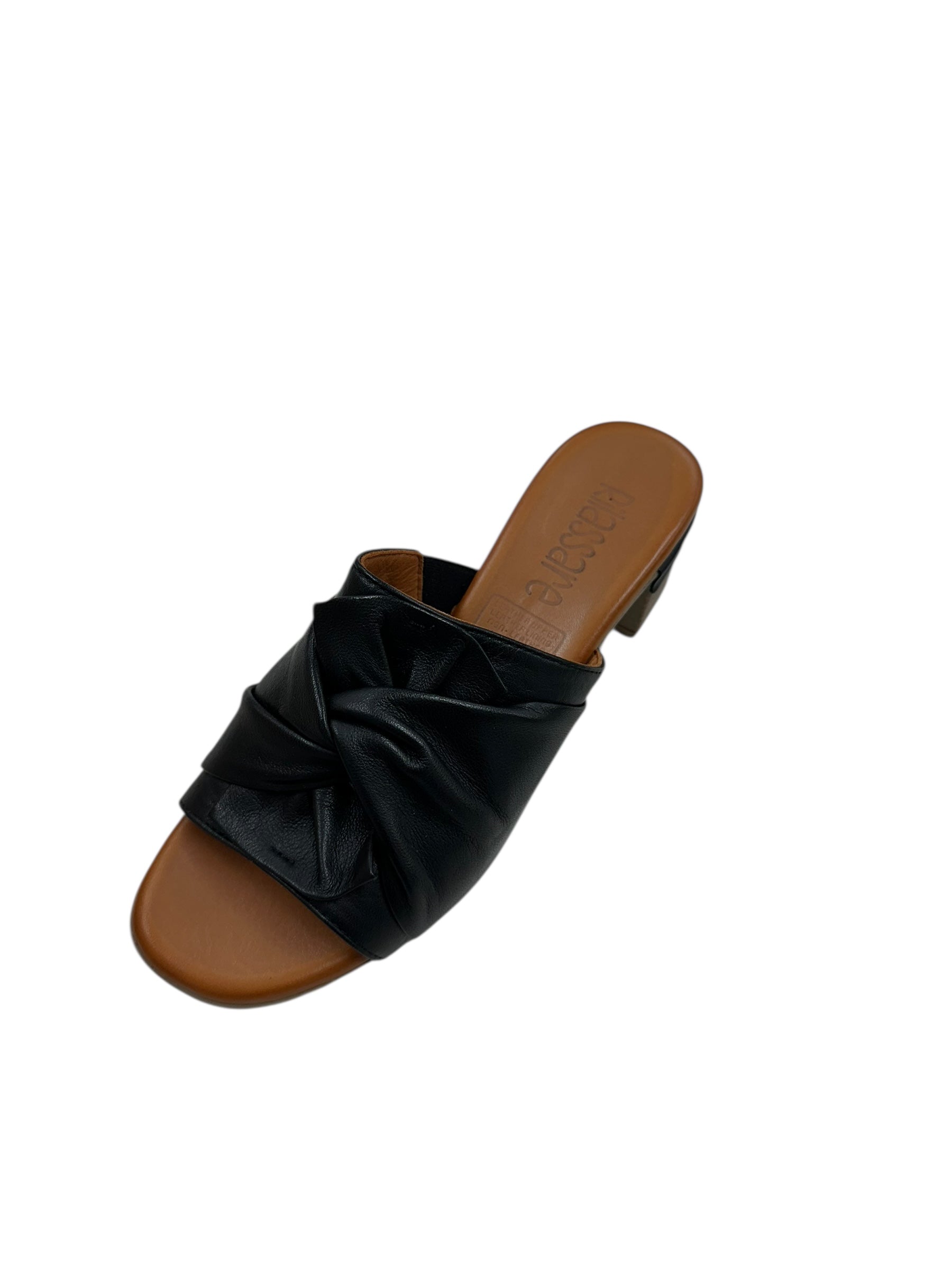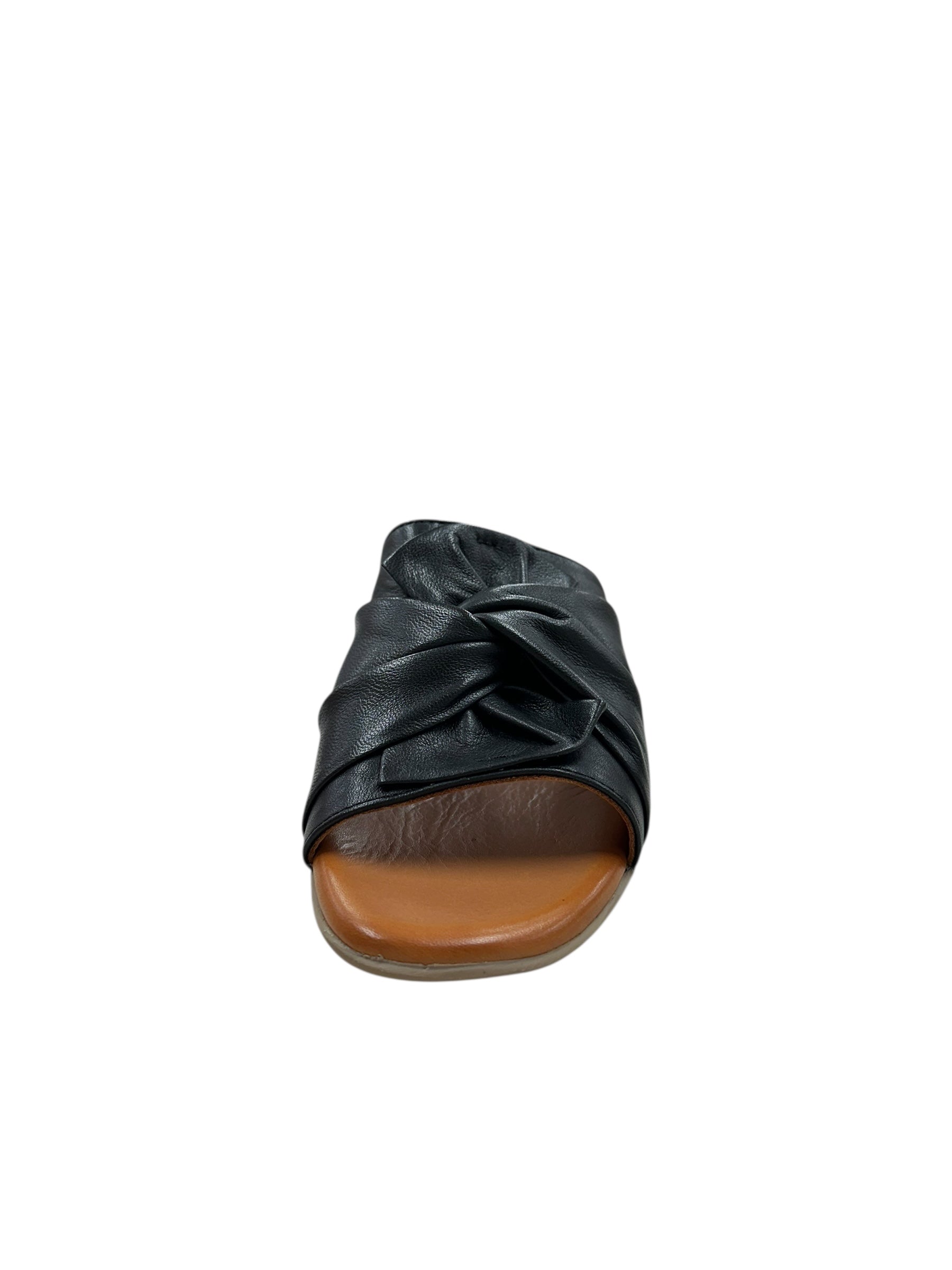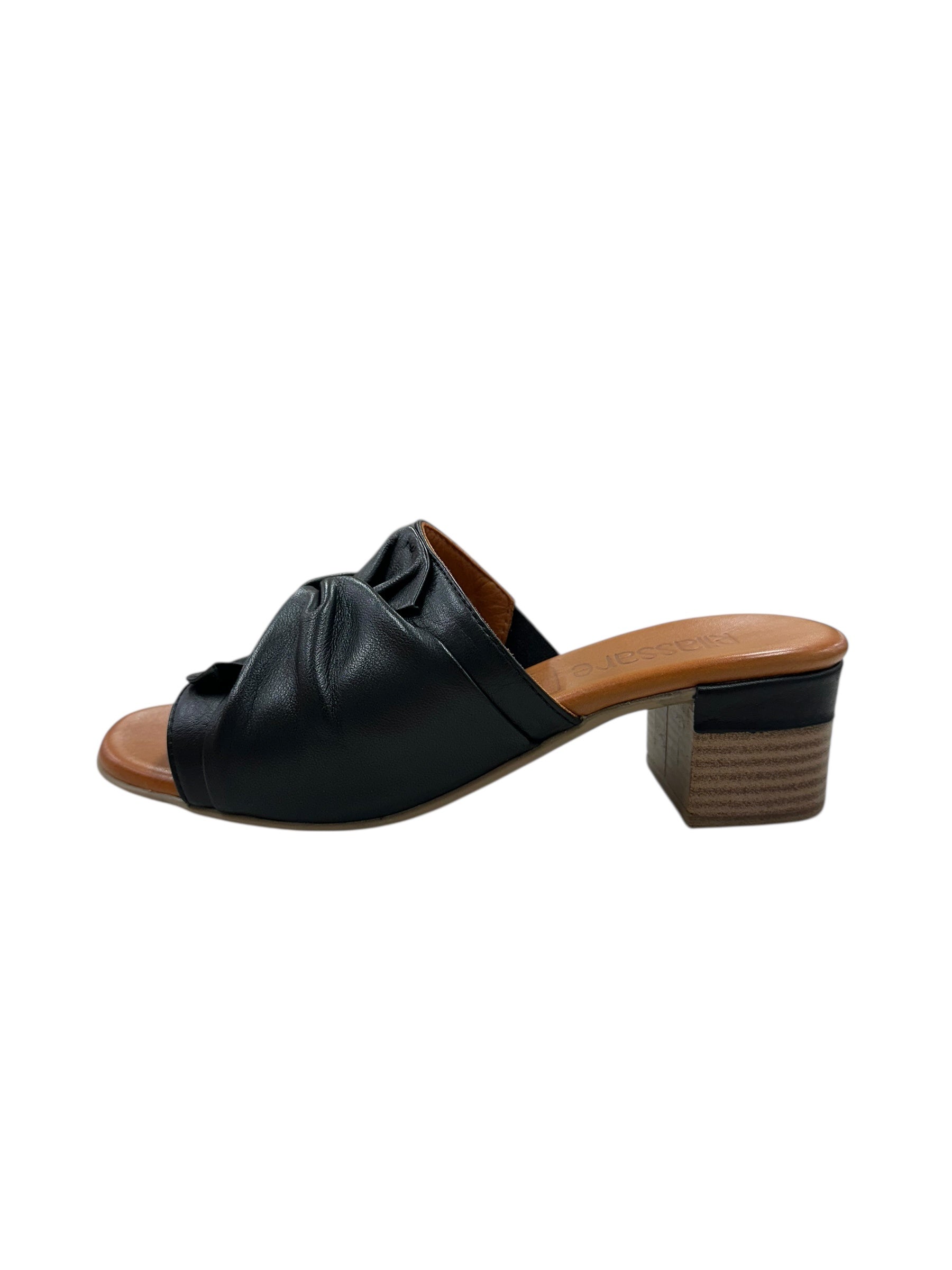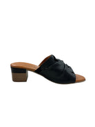 Step into effortless style with the Yaffia—a sleek black slide that's equal parts chic and comfy. The low block heel keeps you grounded while the twisted front detail adds just the right amount of personality. Perfect for those days when you want to look put-together without trying too hard. Slip them on and go.