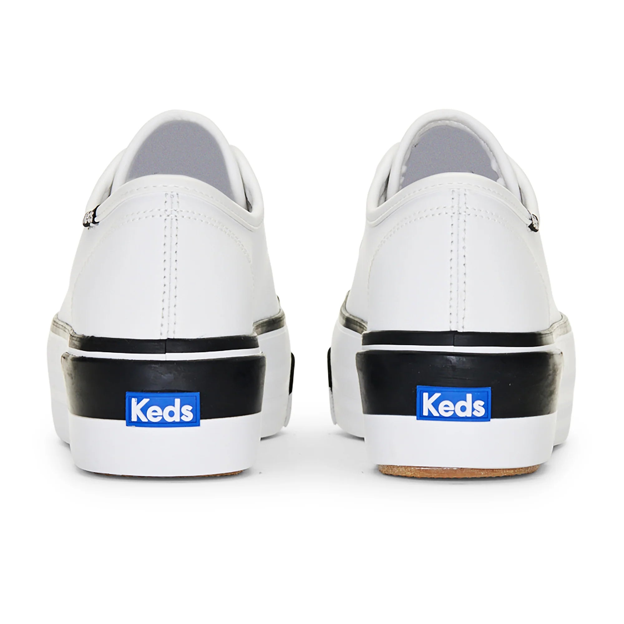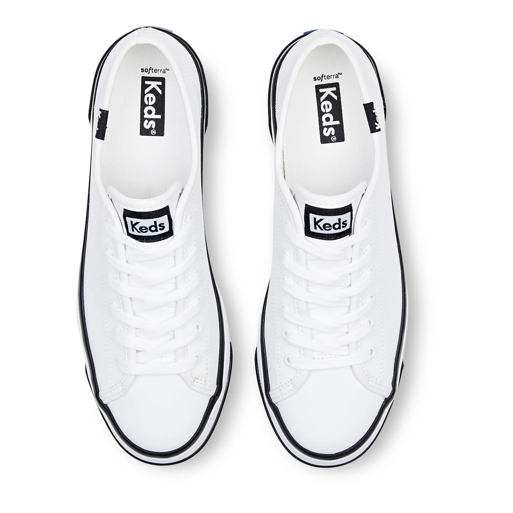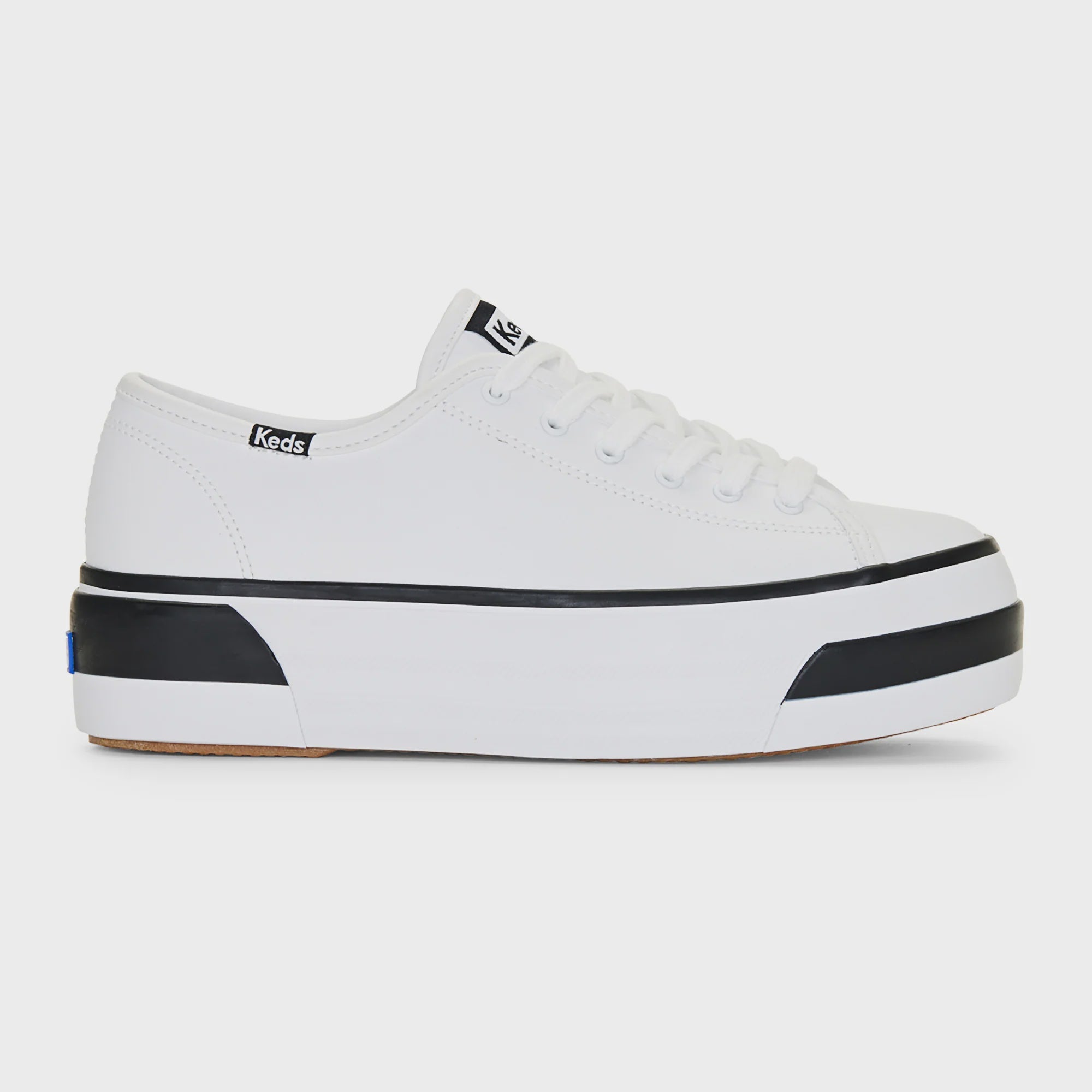 A casual cool platform sneaker with dress-up-or-down appeal. With white bumpers offset by bold graphic black lines, this new iteration of the Triple Up platform combines classic tennis shoe style with on-trend (and super cushiony) 1.5” platform bottoms for a versatile silhouette that plays well with everything from leggings to LBDs. This leather platform sneaker makes an easy—and uplifting—addition to the everyday rotation.