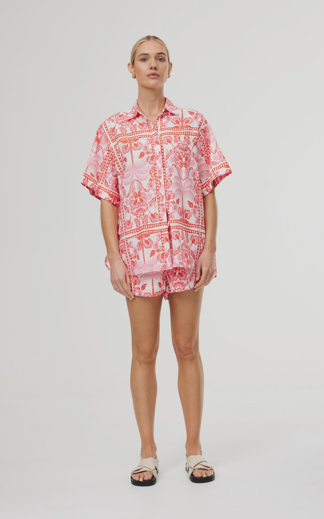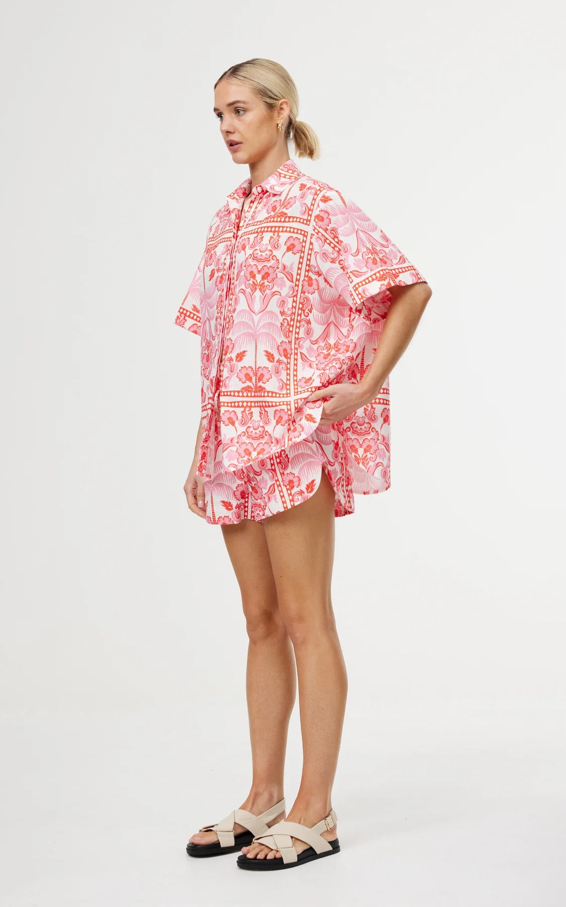 The Juniper Shirt is a classic, oversized shirt shape with short cuffed sleeves, patch pockets and curved side seam details.