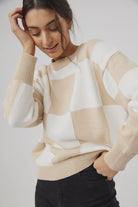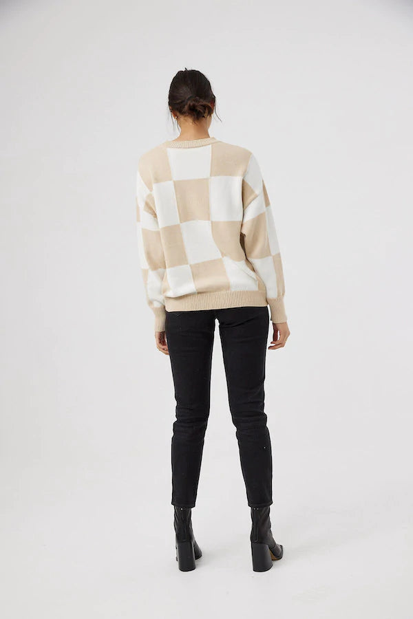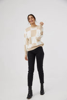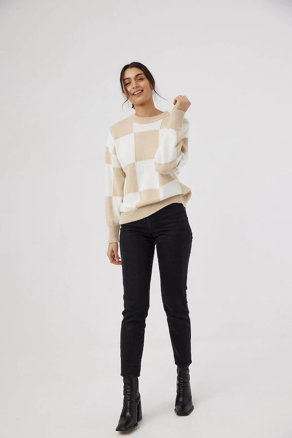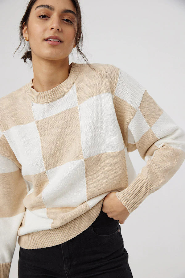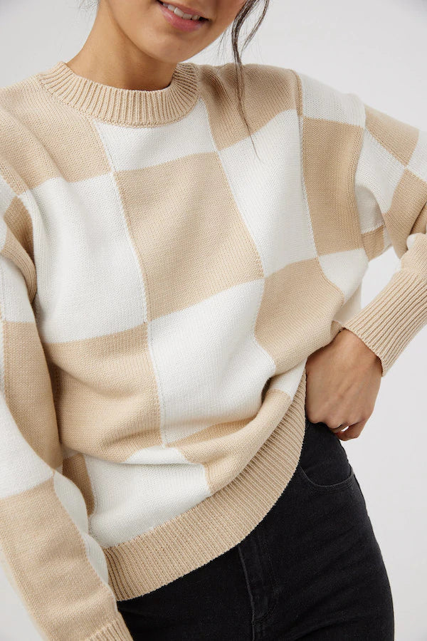 Break up the monotone with our Peppa Knit in Latte Check.