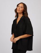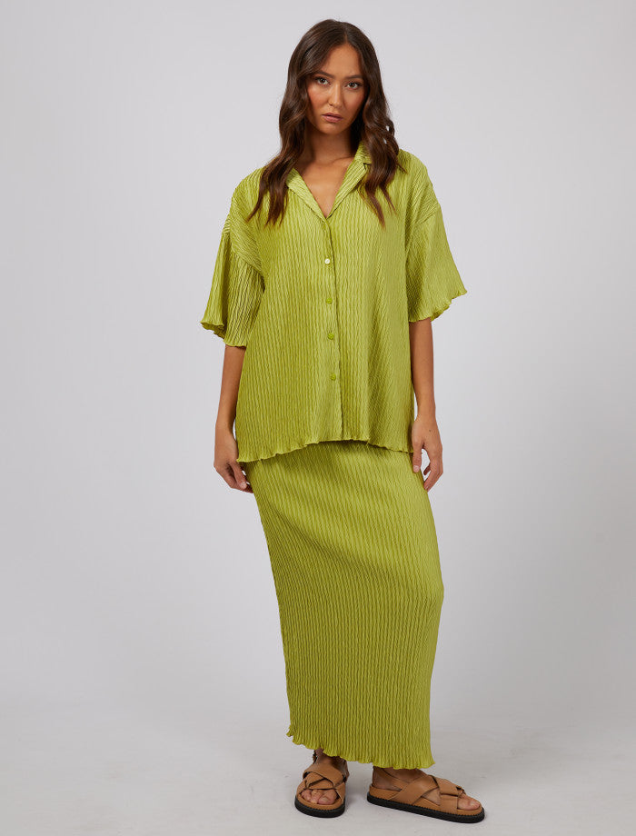 Get ready to strut your stuff in style with the Maxinne Shirt! This playful button up shirt features a trendy collar and a textured fabric that will make you stand out from the crowd. And for the ultimate fashion statement, pair it with our matching skirt or pants. You'll be the talk of the town in this unique and quirky ensemble!