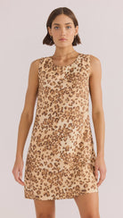 The Arden Shift Mini Dress in leopard print is the perfect statement piece. Featuring a relaxed silhouette, and a soft leopard pattern. This print is exclusive to MINKPINK. Style yours with a chunky slide, or barely there sandal to complete the look.