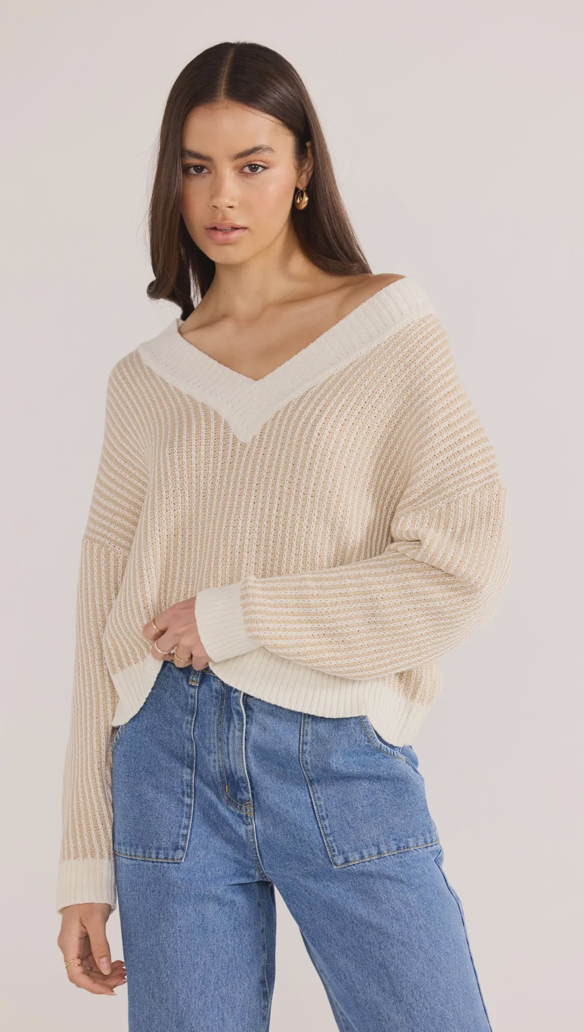 The Megan V-Neck Sweater brings laid-back ease and a touch of polish to your cold-weather lineup. Featuring a soft, breathable knit and a flattering wide V-neckline, this relaxed style is perfect for effortless layering.