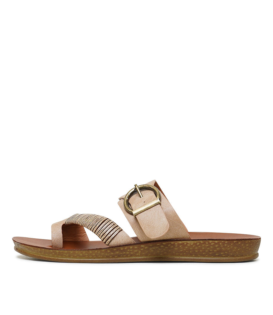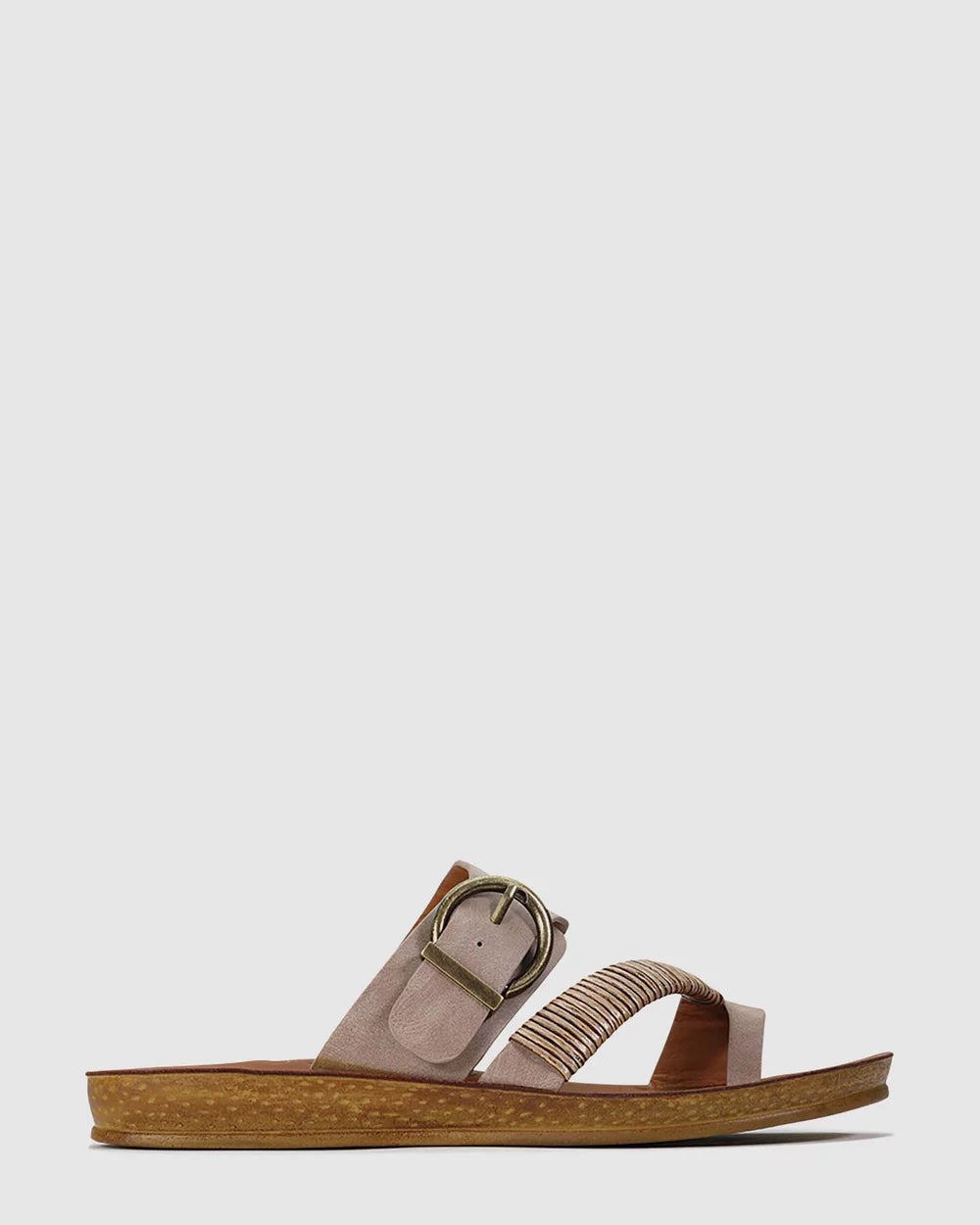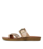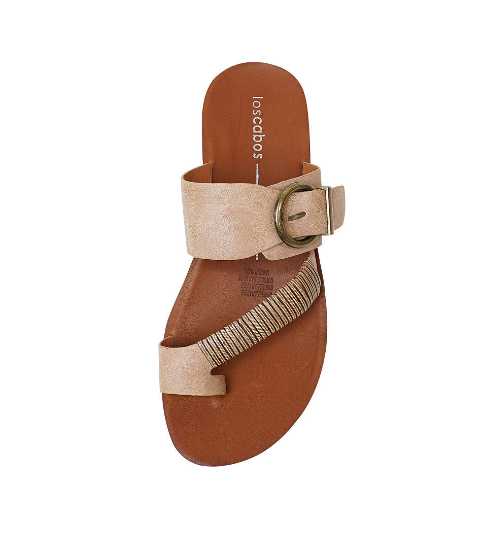 Los Cabos captures the spirit of fun in the sun with their Bria sandal. The ease of a slip-on is given a touch of natural beauty with our woven bamboo wrap gracing the toe strap, whilst the antique round buckle on the back strap adds a treasure box accent. To top off the ensemble the upper is given a special graffiato detailing to add an authentic surface relief.