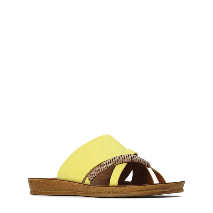 Combining earthy elements with elevated style, these comfy slides provide the perfect finish to any resort wear wardrobe. Simple yet irresistibly chic, Bride brings textural bamboo detail to offset the timeless slide-on design, with a range of colours to reflect the diversity of sun-drenched destinations worldwide.