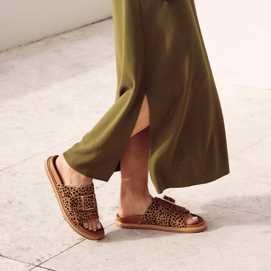 Step out in style and comfort with the Dede Fussbett Sandals. Crafted with Aniline leather or pony hair leather, these sandals feature a no heel design, a wrapped footbed and a large metal buckle for a classic look. The moulded footbed ensures long-lasting support and cushioning as you move, making them the perfect choice for everyday wear.