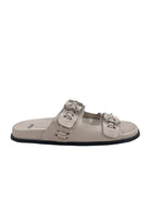 Slide into summer with these Hiddem leather slides! Featuring buckle fastenings and moulded footbeds, they'll keep your feet comfortable and cool! These sandals are perfect for any occasion - whether you're walking across a beach or strolling downtown! Trust us, you won't be "hiddem" with these stylish shoes!