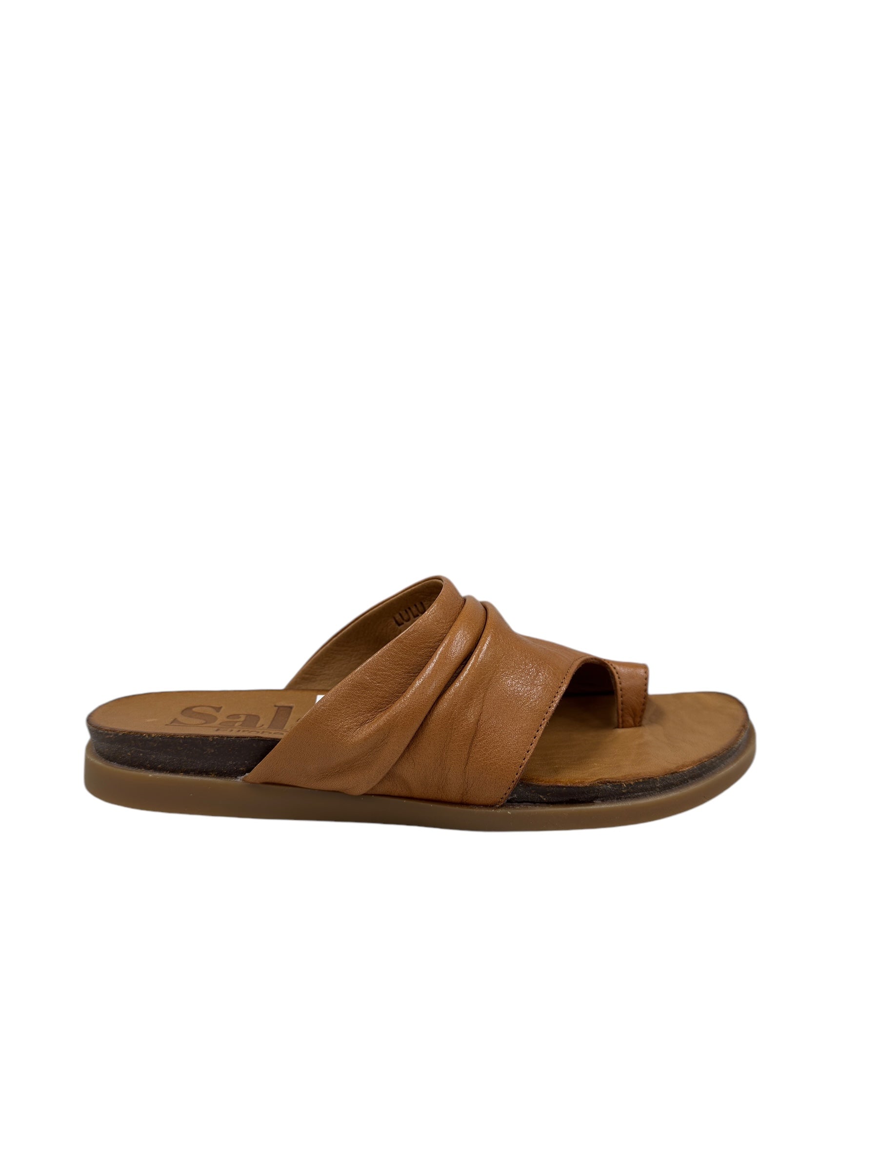 Introducing the Lulu - Coconut, the perfect summer slide for those who like to keep it cool and stylish. With a wide foot strap and leather material, these slides provide ultimate comfort and a trendy tan look. Walk, slide, and chill with Lulu!