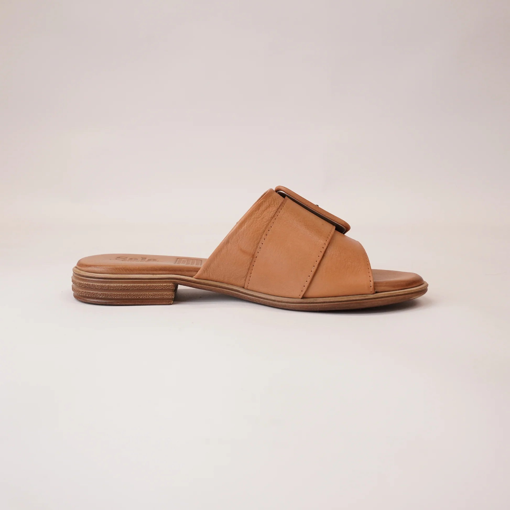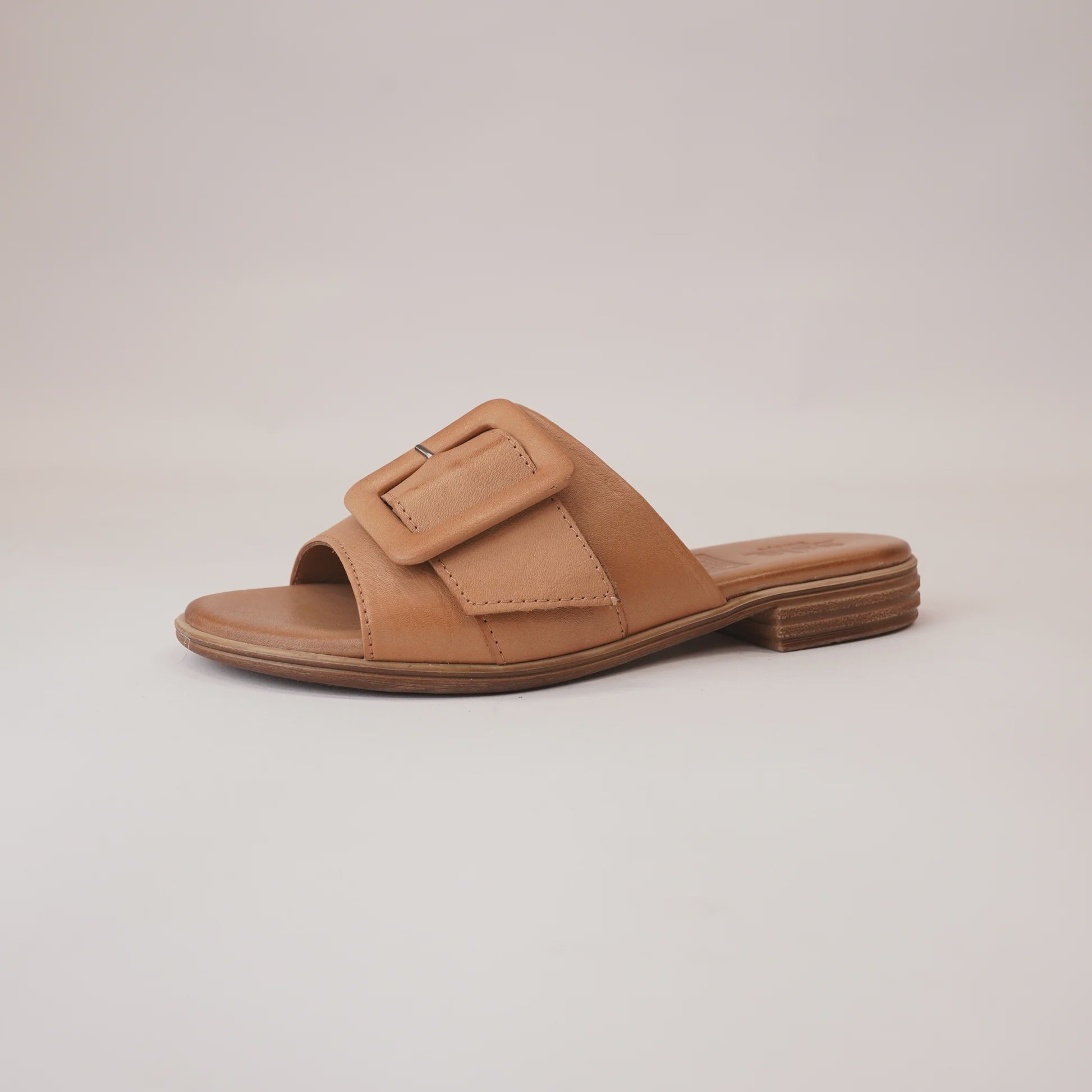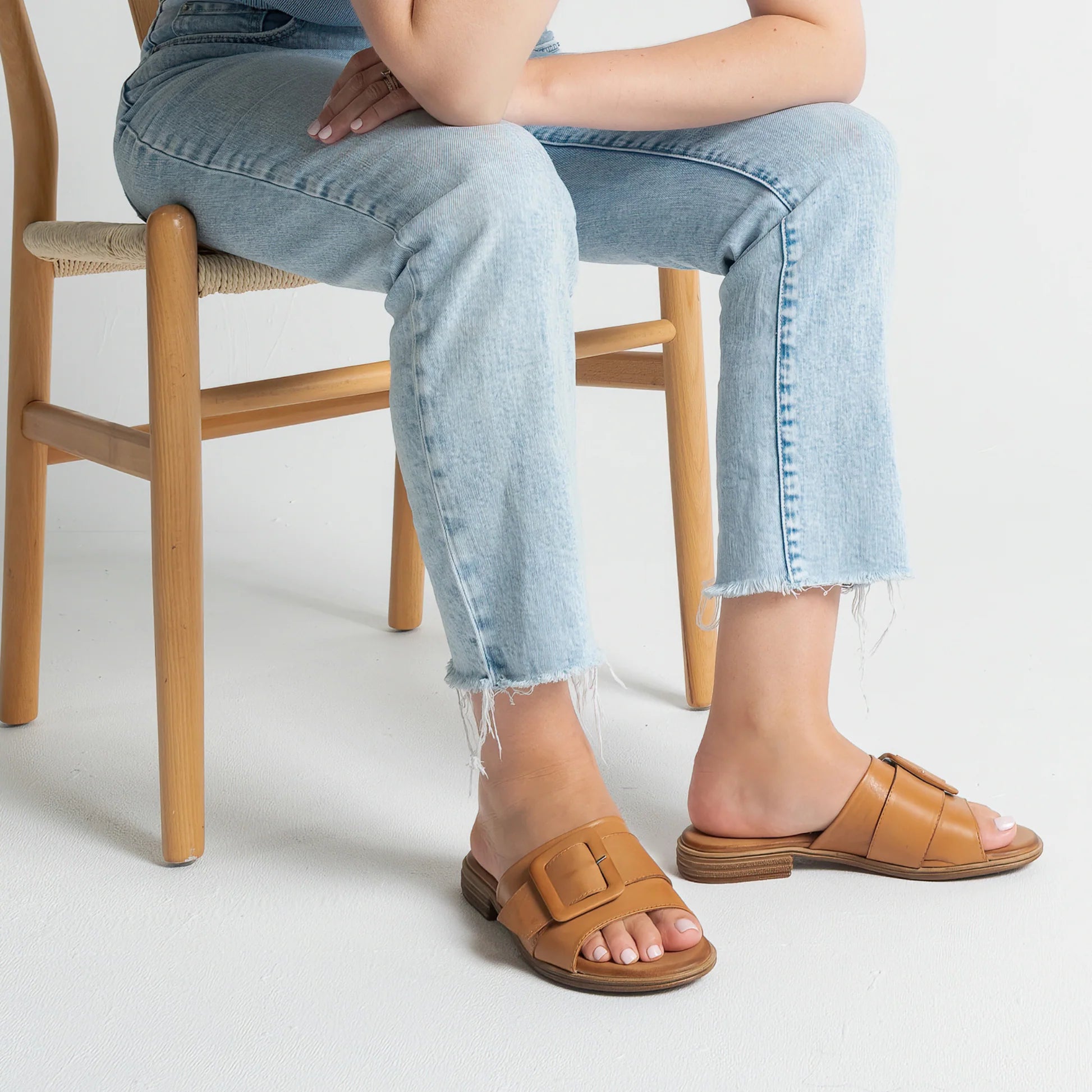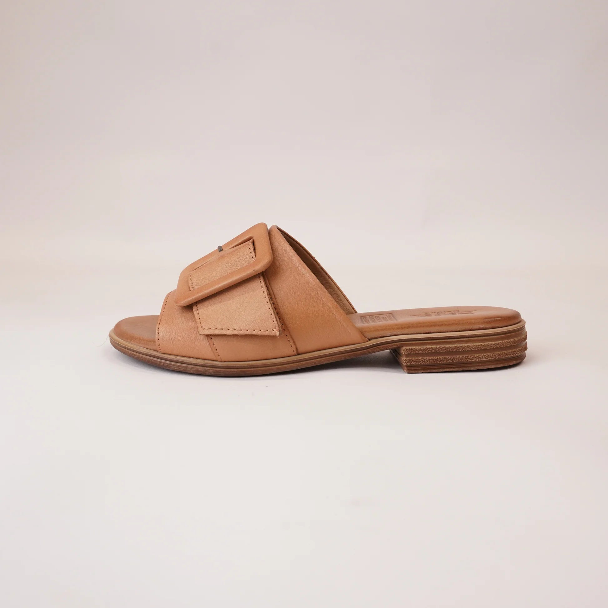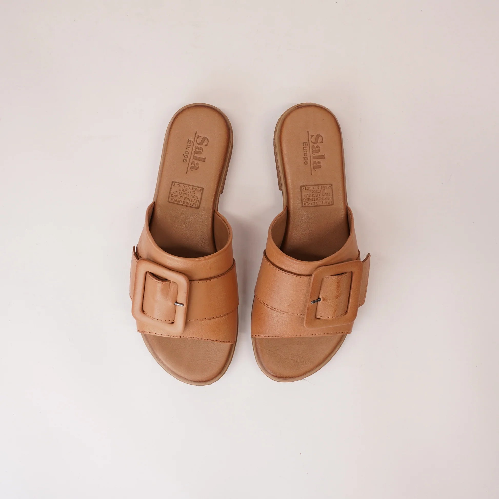 Be effortlessly stylish and comfortable in these Miley Coconut Leather Slides by Sala. Handcrafted in Turkey, the leather upper and lining provide luxurious quality while the non-leather outsole and decorative buckle add a touch of elegance. With a 2cm heel, these slides are perfect for any occasion.