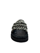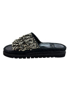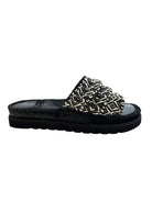 Step into style with Nelly - Art espadrilles. The cream and black Aztec print adds a unique touch, while the ruffle across the toe brings a playful flair. Made in Spain for quality you can trust.