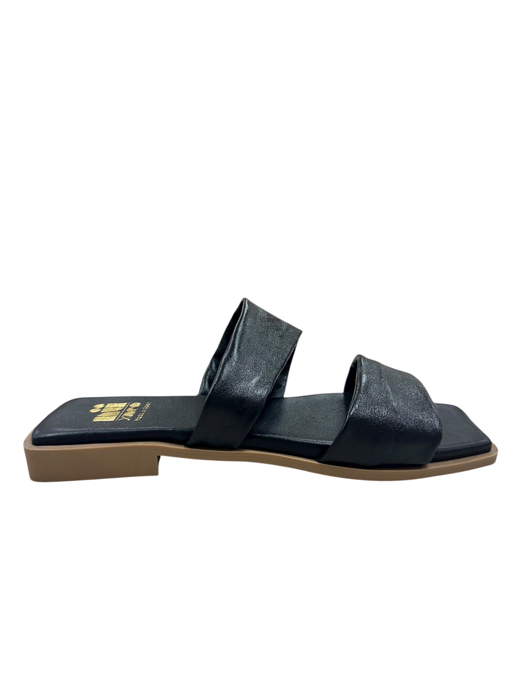 Step into effortless style with the Winnet—a sleek black leather slide that's equal parts chic and comfy. The square toe design gives it a modern edge, while dual straps keep your foot secure without the fuss. Perfect for those days when you want to look put-together without actually trying. Slip them on and glide through your day in understated cool.