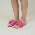 Step into effortless style with Zoya, a slide designed on the signature Naked Arches footbed for all-day comfort. The standout feature is its beaded circular buckle, adding a touch of elegance to the fresh, vibrant upper. Versatile yet eye-catching, Zoya is the perfect blend of design and everyday wearability, making it a true summer statement piece.